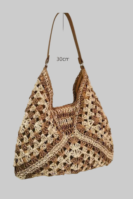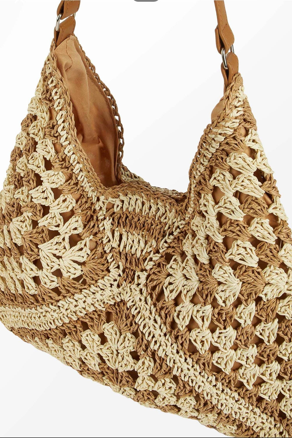 WOVEN WHIMSY TWO TONE RAFFIA KNIT SHOULDER BAG