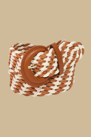 Elevate your style with these Two Tone Striped Braided Belts Sahara Weave and Ebony Stitch from Mandalay And Company. Crafted with high-quality materials, it features a blend of brown tones and intricate braiding for durability and elegance. Perfect for any occasion, it complements both casual and formal wear. Embrace sophistication with this stylish piece.