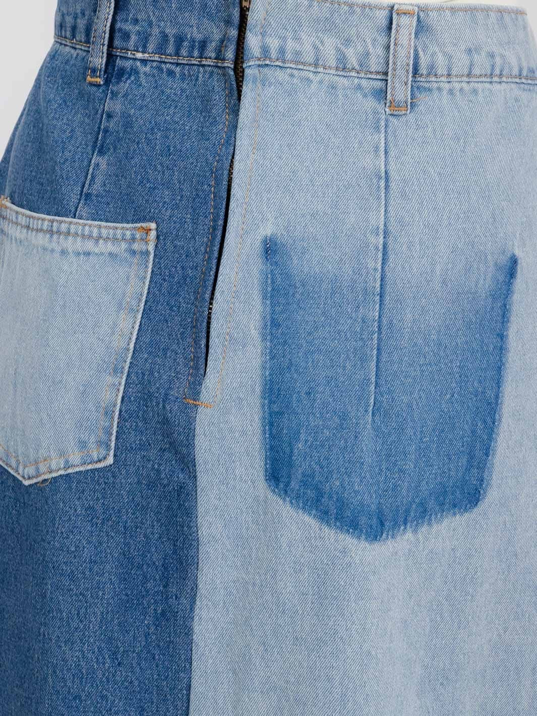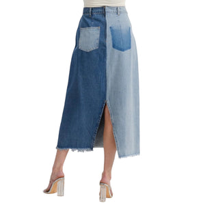 PATCHWORK BLUES BUTTON 2-TONE DENIM MIDI SKIRT
