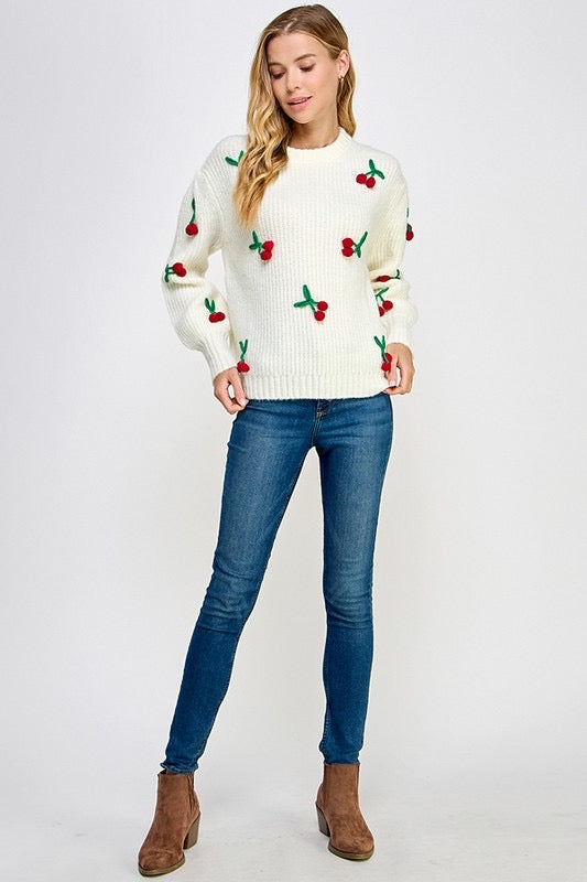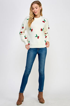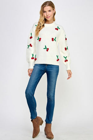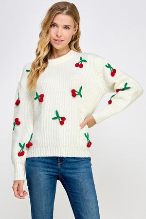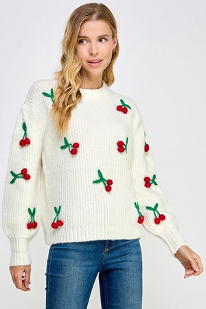 Cherry Bombshell 3D Knit Oversized Pullover Sweater