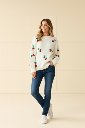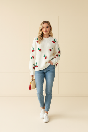 Discover the perfect blend of comfort and eye-catching style with the Cherry Bombshell 3D Knit Oversized Pullover Sweater. Featuring vibrant 3D cherry details and a relaxed, oversized fit, this sweater keeps you cozy while adding a playful yet sophisticated edge to your everyday wardrobe. Ideal for making a bold statement with effortless comfort.