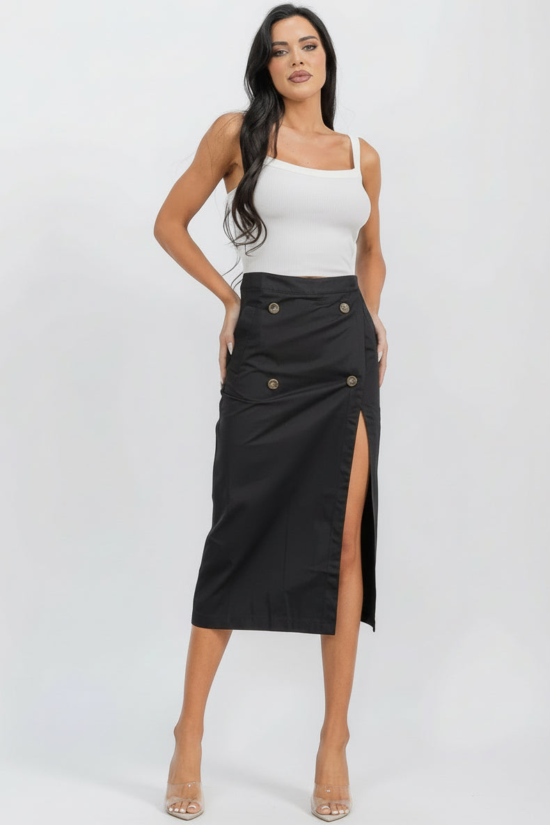 The Cinderlane Side Slit Zipper Midi Skirt combines bold design with practical style. Its flattering silhouette and side slit deliver a modern, confident look, while the convenient zipper ensures easy wear. Perfect for making a statement at work or casual outings, this skirt adds a touch of elegance and edge to your wardrobe. Step out with confidence and style in the Cinderlane Midi Skirt