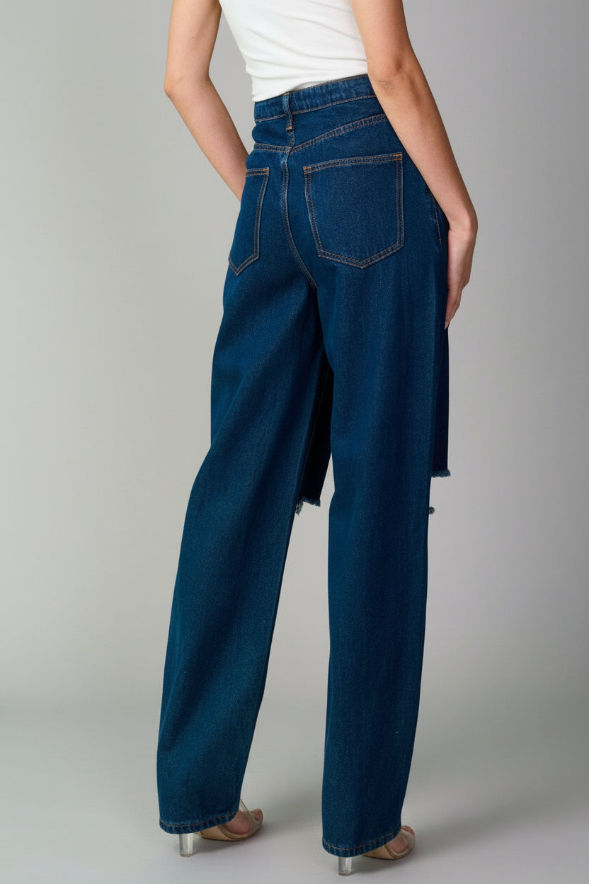 Step into bold style with these Dark Indigo Ripped Knee 90's Boyfriend Baggy Leg Denim Jeans. Their daring ripped knees and loose, baggy silhouette channel rebellious 90’s vibes, making a fearless statement wherever you go. Perfect for those who refuse to blend in, these jeans combine vintage edge with modern attitude for a look that demands attention.