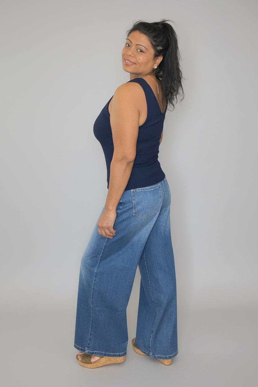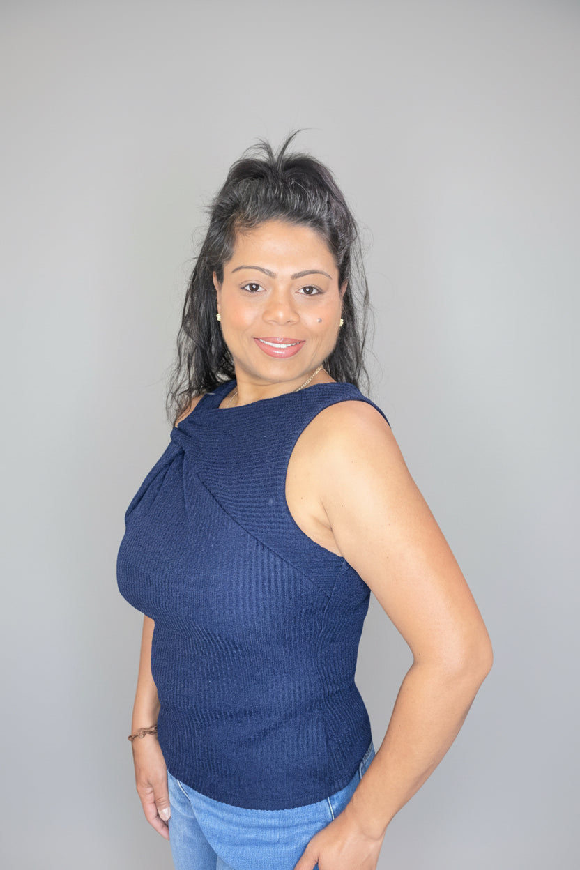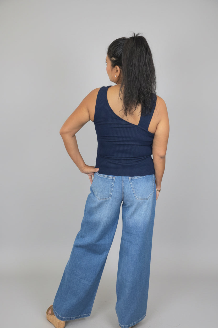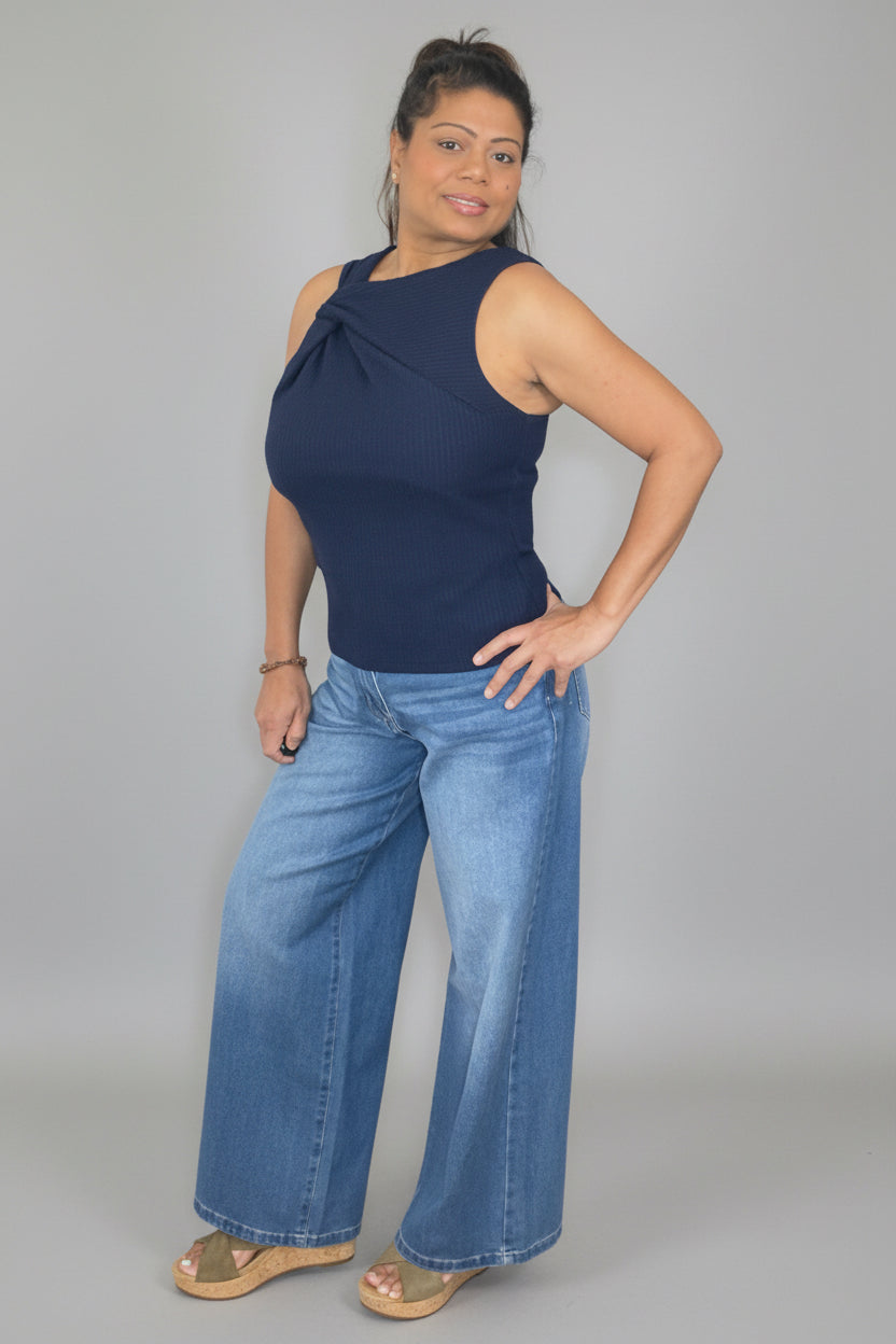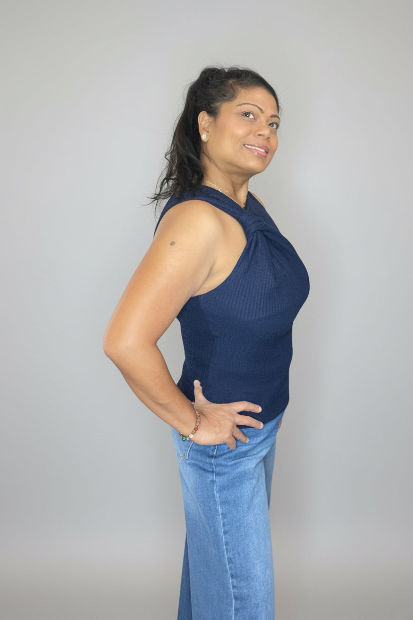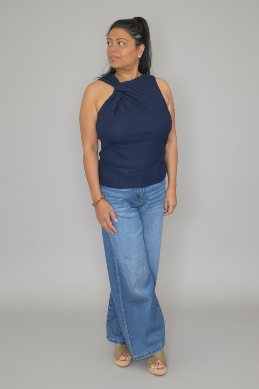SLINKY TWIST NECK DARK BLUE TANK TOP