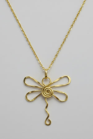 Brass Gold Dragonfly Necklace