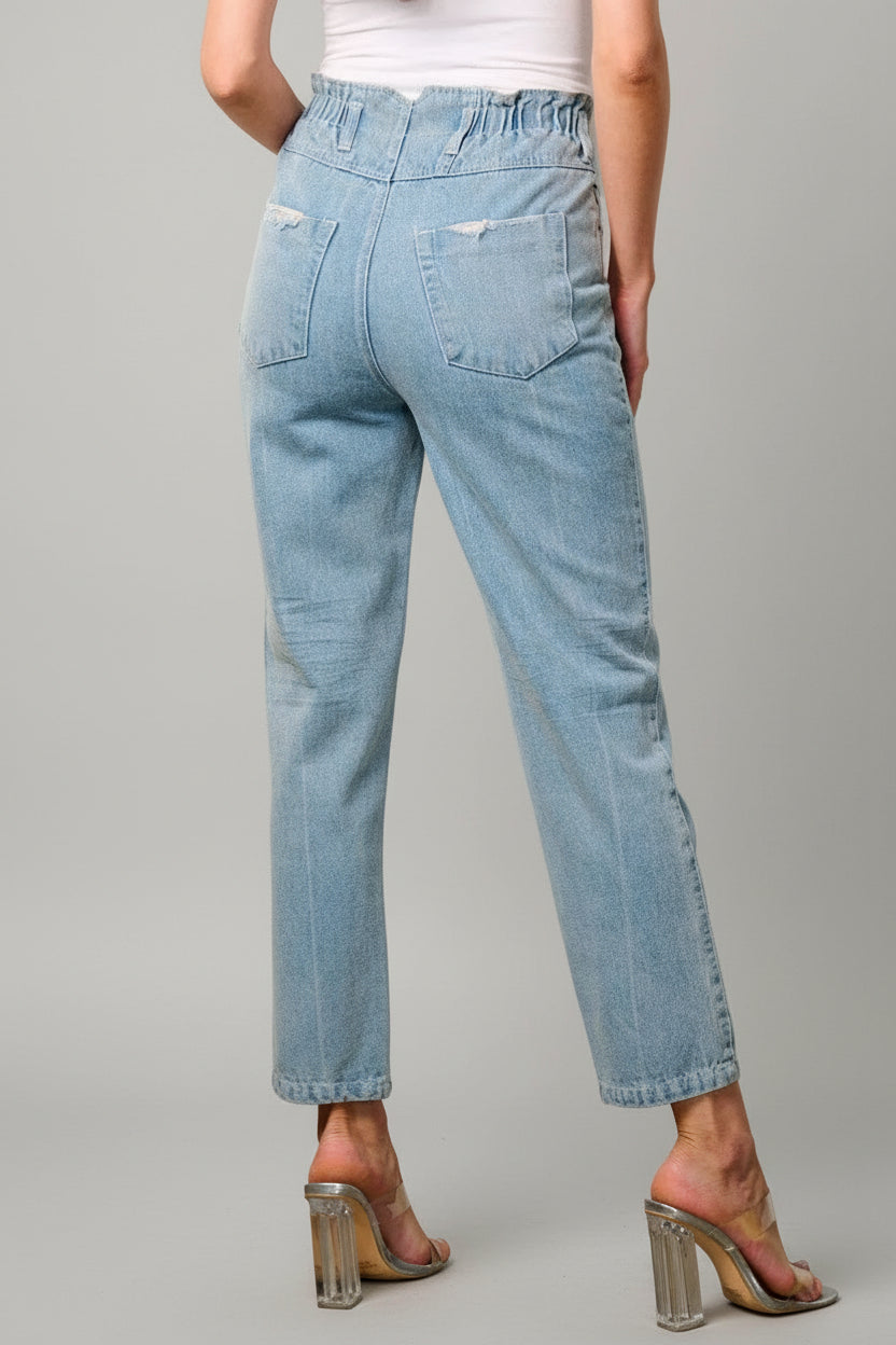 CLEAR SKY LT. BLUE ELASTIC HIGH WAIST CROPPED DENIM JEANS