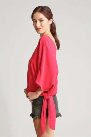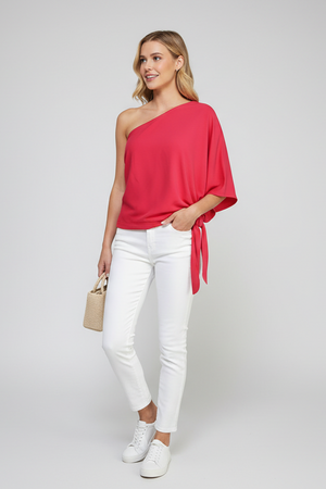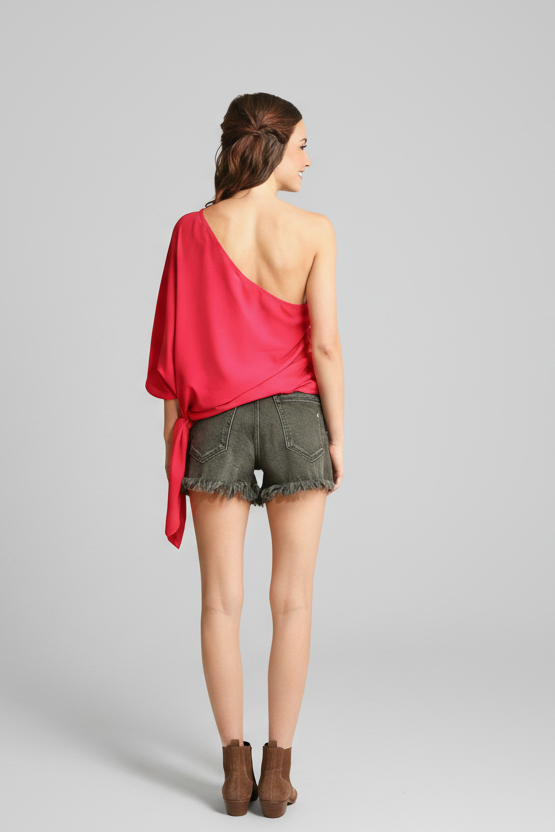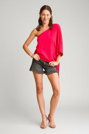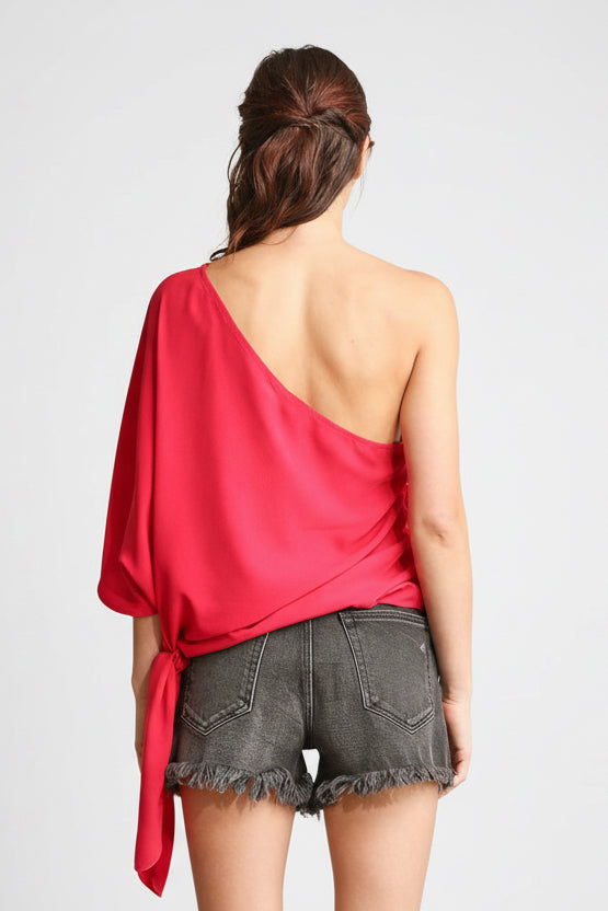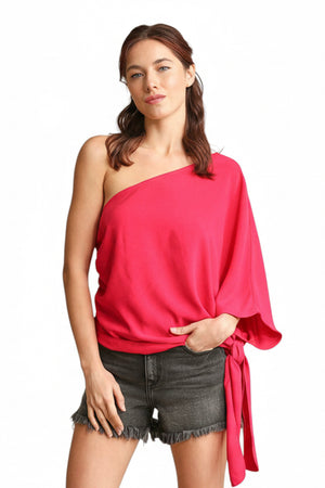 SASHAY ONE-SHOULDER FUCHSIA WAIST TIE TOP