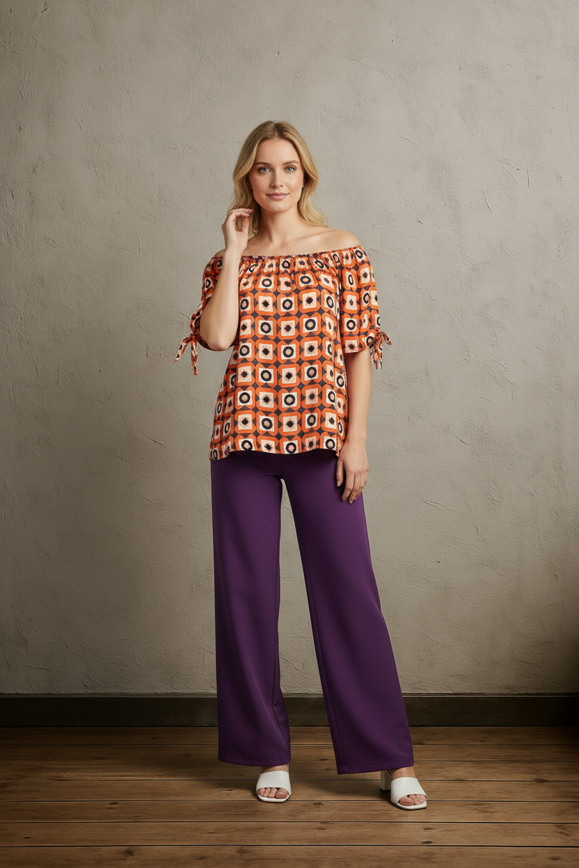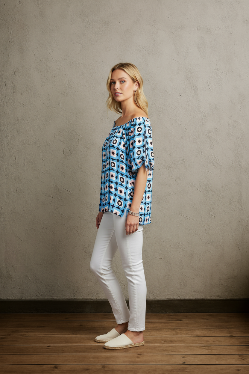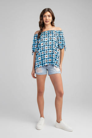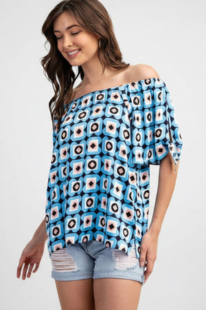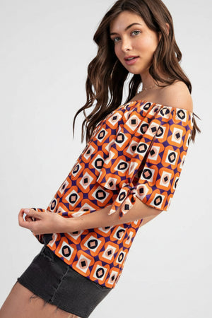 Turn heads with the Grid & Glow Off the Shoulder Geometric Print Top! This playful piece features a bold geometric pattern and a flirty off-the-shoulder design, perfect for adding a fun twist to your wardrobe. Lightweight and breezy, it’s ideal for sunny days or casual nights out. Embrace effortless style and let your glow shine through!