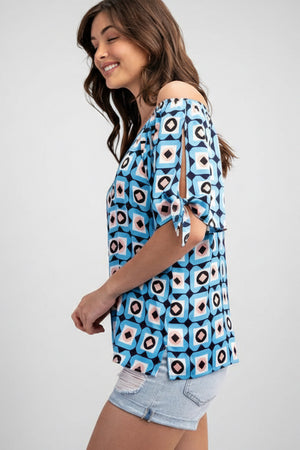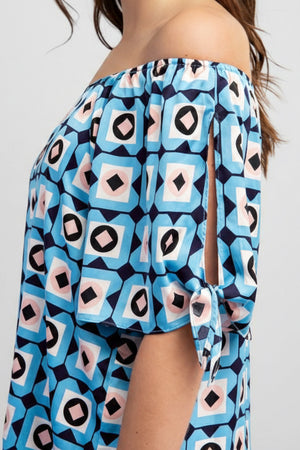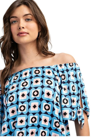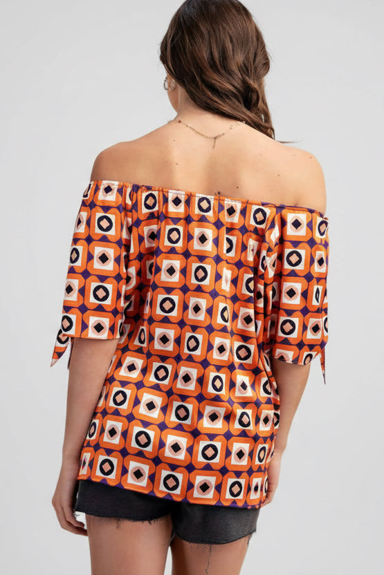 GRID & GLOW OFF THE SHOULDER GEOMETRIC PRINT TOP