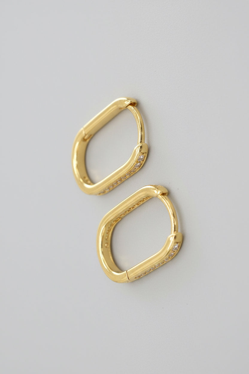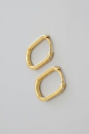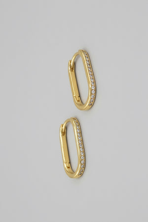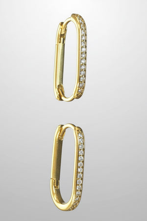 Gold Dipped Cz Pave Edge Oval Hoop Earrings