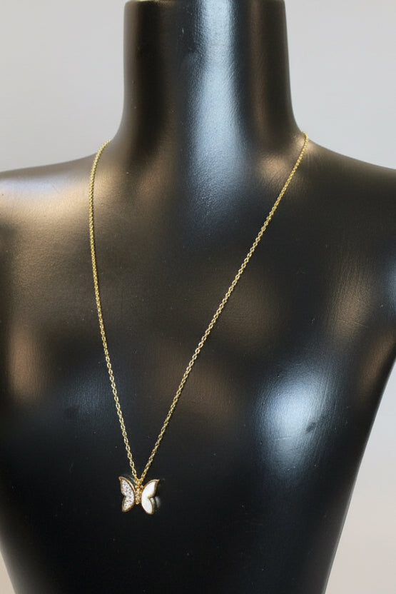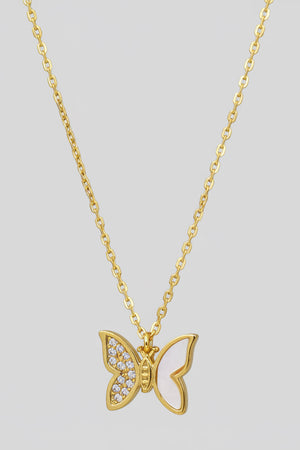 Gold Dipped Shell And Cz Pave Butterfly Pendant Necklace