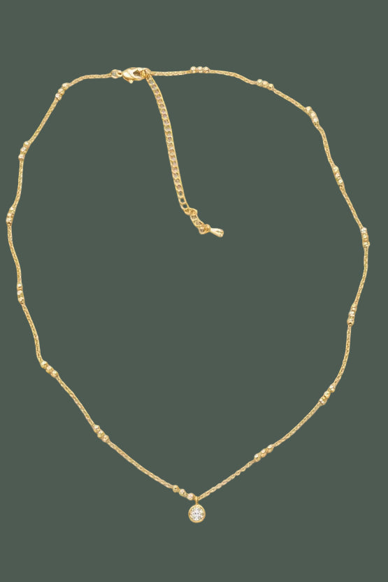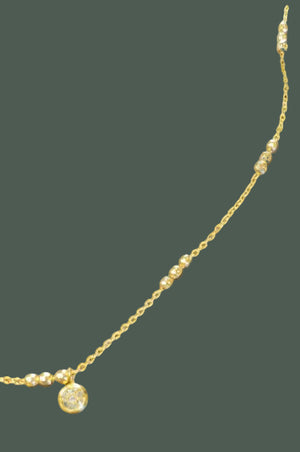 Gold Mini Pave Coin Pendant Chain Necklace