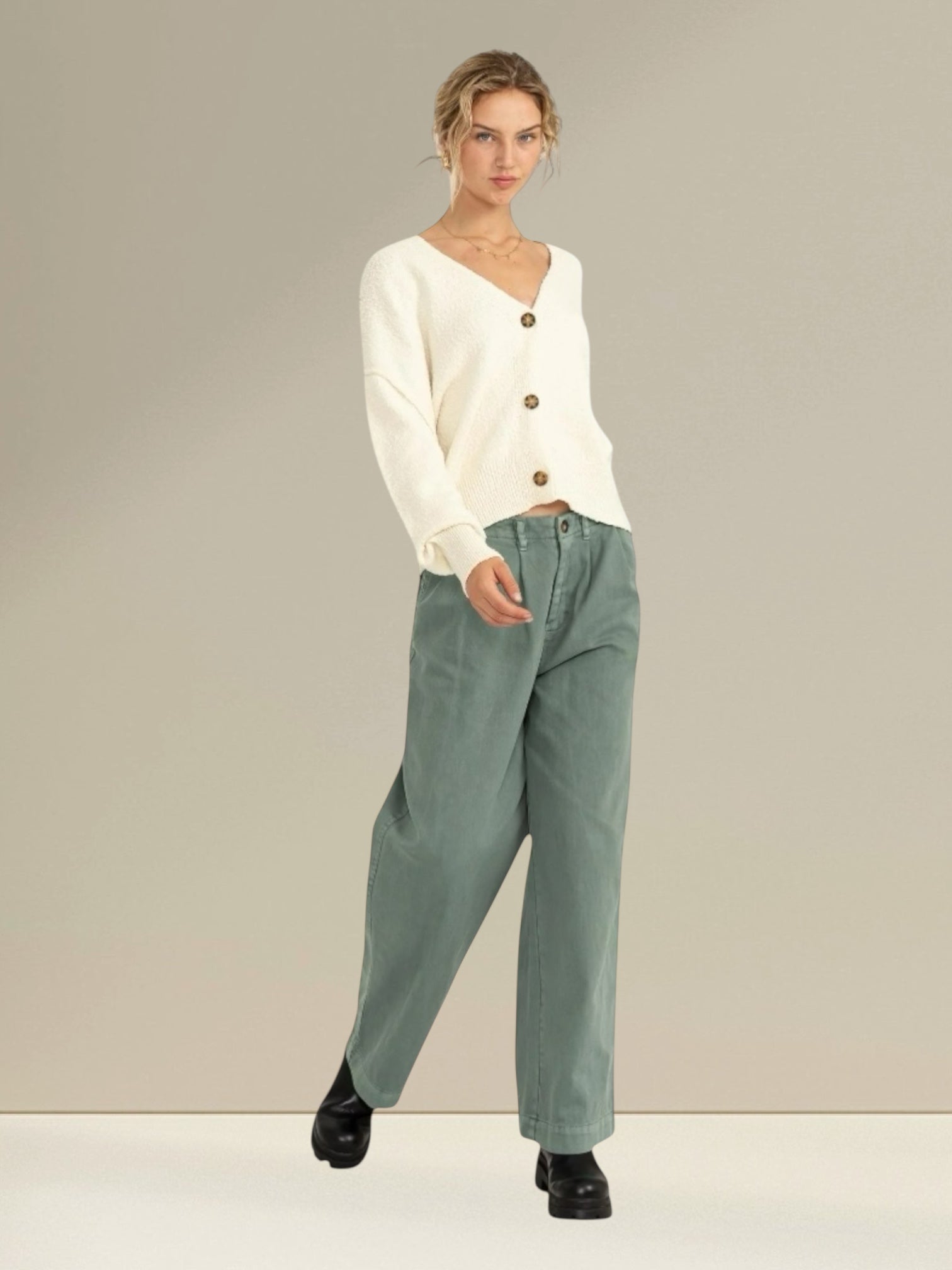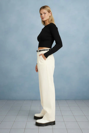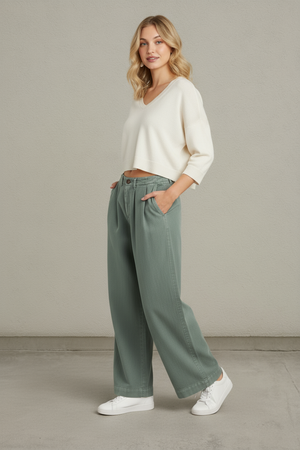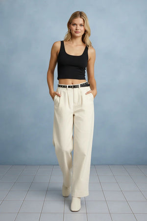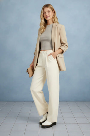Elevate your wardrobe with these sophisticated pleated mid-rise wide leg pants. The timeless pleated front adds refined structure and visual interest, while the generous wide leg silhouette offers comfort and contemporary style. Perfect for creating polished looks that transition seamlessly from office to evening, these pants deliver both elegance and ease of movement. The mid-rise waist provides flattering coverage and pairs effortlessly with everything from crisp blouses to fitted sweaters. Invest in a versatile staple that works as hard as you do.