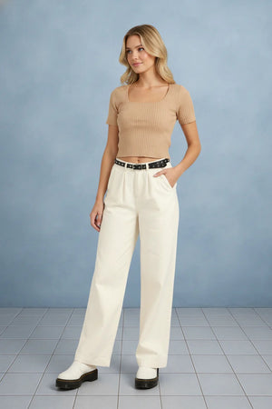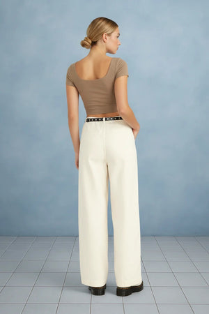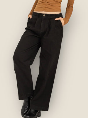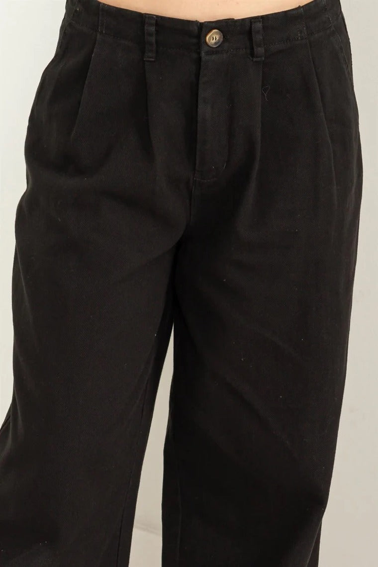 Pleated Mid- Rise Wide Leg Pants