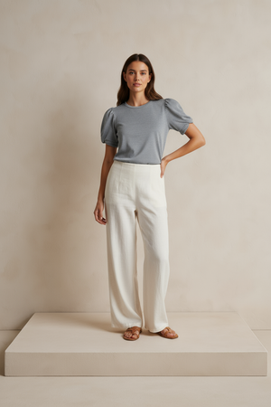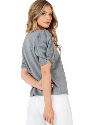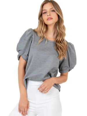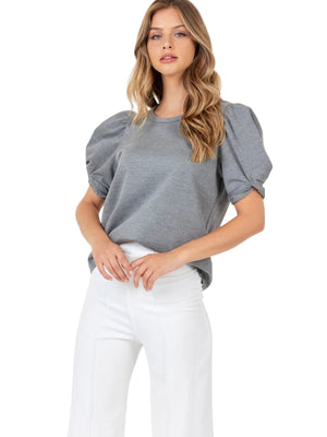 GRAY MUSE SHORT PUFF SLEEVE TOP