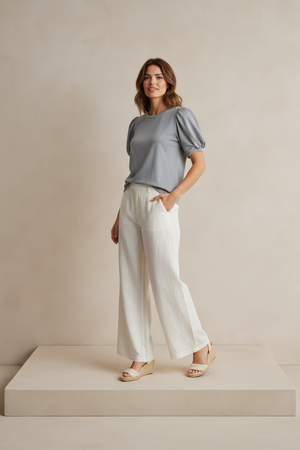 Elevate your wardrobe with the Gray Muse Short Puff Sleeve Top, designed to blend classic charm with modern style. Its delicate puff sleeves add a touch of femininity, while the versatile gray hue pairs effortlessly with any outfit. Perfect for both casual days and dressier occasions, this top offers a flattering fit that enhances your silhouette with comfort and elegance. Make a subtle yet confident statement wherever you go.