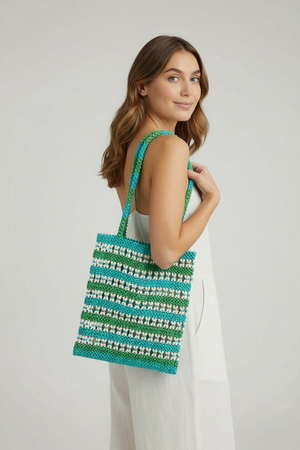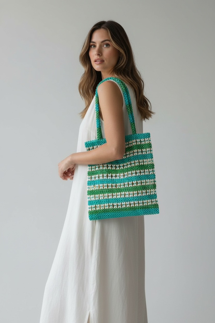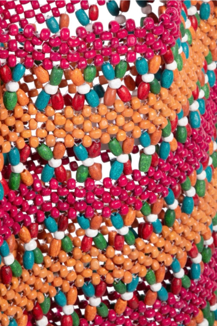 Elevate your style with the Bali Wooden Beadscape Bag, a unique accessory crafted from natural wooden beads. Its lightweight design offers effortless carrying, while the intricate beadwork adds a touch of artisanal charm to any outfit. Perfect for casual outings or special occasions, this bag combines functionality with eye-catching appeal to make a statement wherever you go.