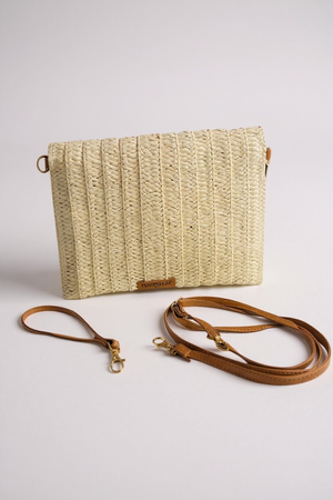 OCEAN MIRAGE HAND DESIGNED LAYERED STRAW ENVELOPE CLUTCH/ CROSSBODY PURSE