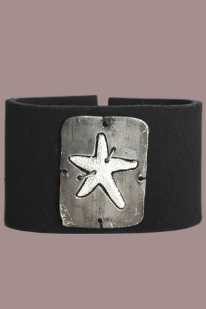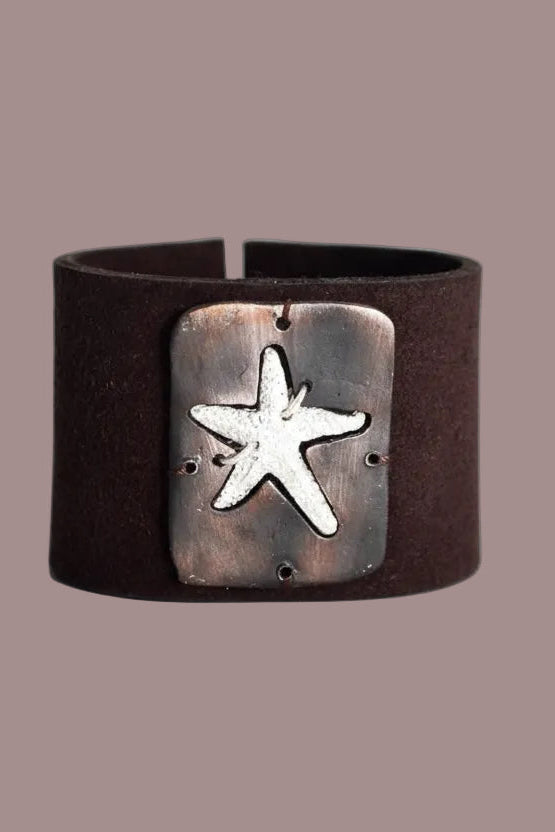 Handmade Bronze and Silver Finish Starfish Accent Leather bracelet