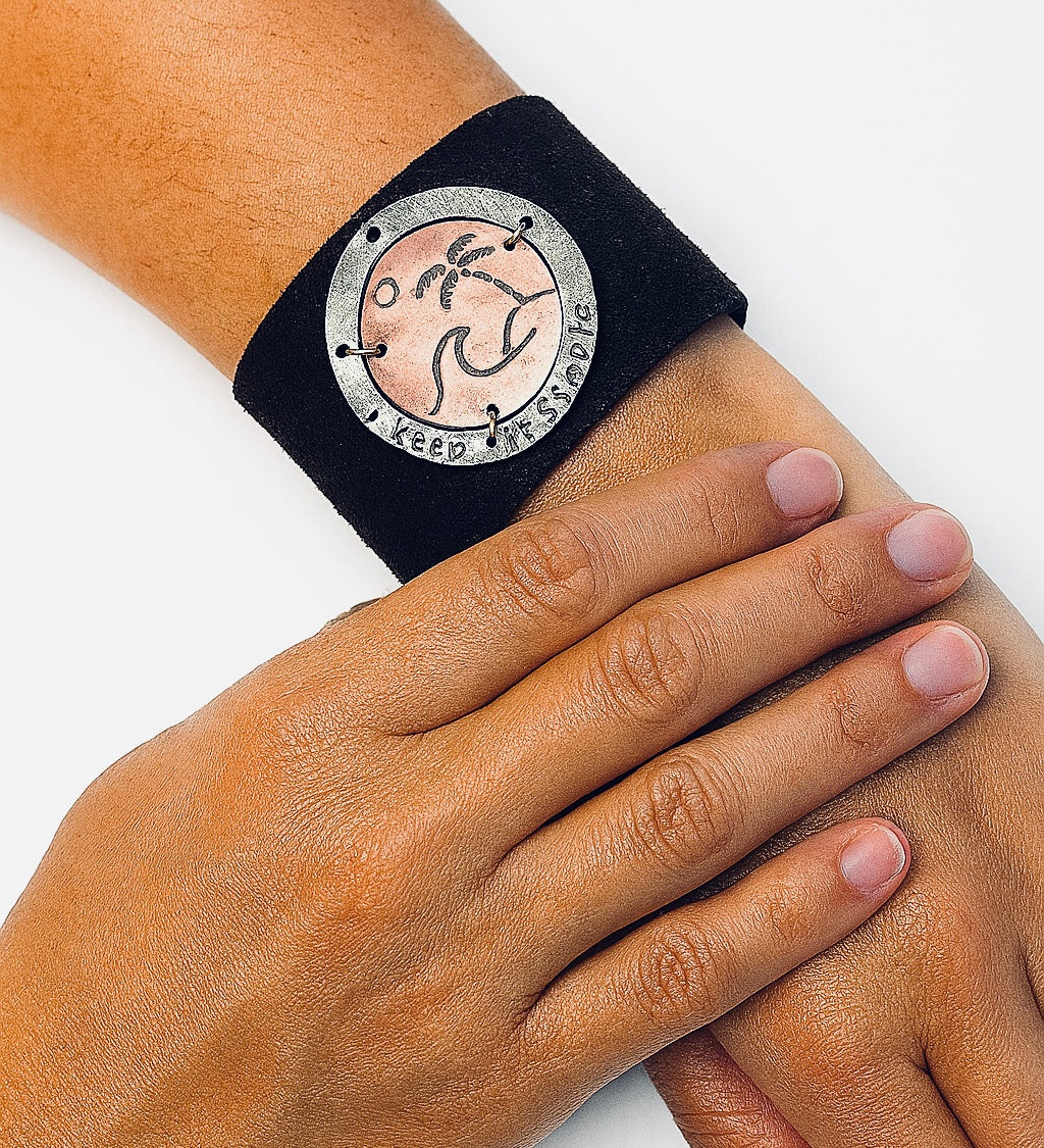 Embrace effortless style with this Handmade Copper "Keep It Simple" Palm Tree Brown Leather Bracelet. Crafted with genuine brown leather and accented by a detailed copper palm tree charm, it adds a touch of natural elegance to any outfit. Perfect for those who appreciate meaningful, minimalist accessories that inspire calm and simplicity every day. Durable and comfortable, this bracelet is a subtle reminder to enjoy life’s simple pleasures.
