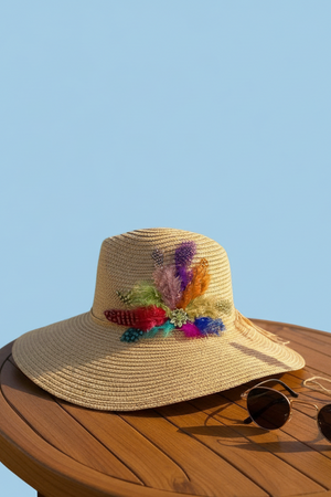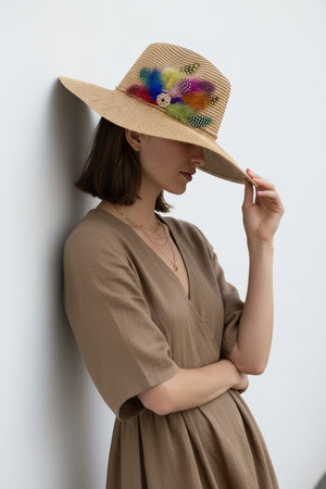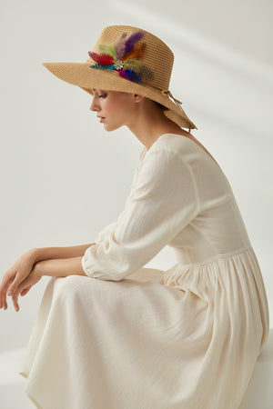 SUN BIRD FEATHER HANDMADE DESIGN FLOPPY SUN HAT COLLECTION