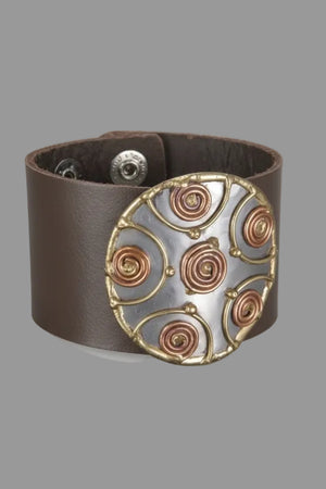 Handmade Genuine leather bracelet with Circle mixed metals