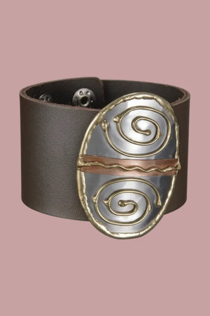 Handmade Genuine leather bracelet with Swirl mixed metals