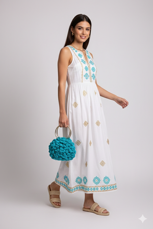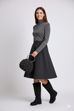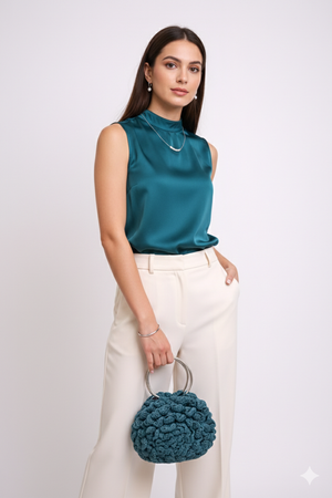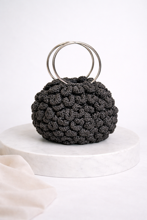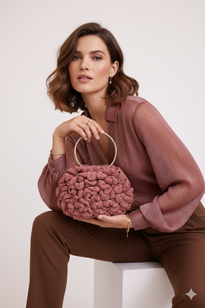 This hand-knitted bag showcases meticulous artisanal detail with its distinctive halo embossed rose design, creating dimensional texture that catches the light beautifully. Reinforced steel handles deliver reliable strength and a refined finish, making this piece both functional and fashion-forward. Ideal for discerning individuals seeking a sophisticated accessory that balances handcrafted authenticity with modern practicality.