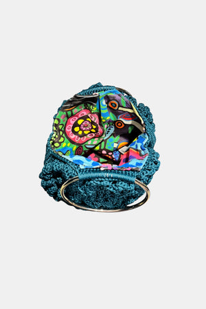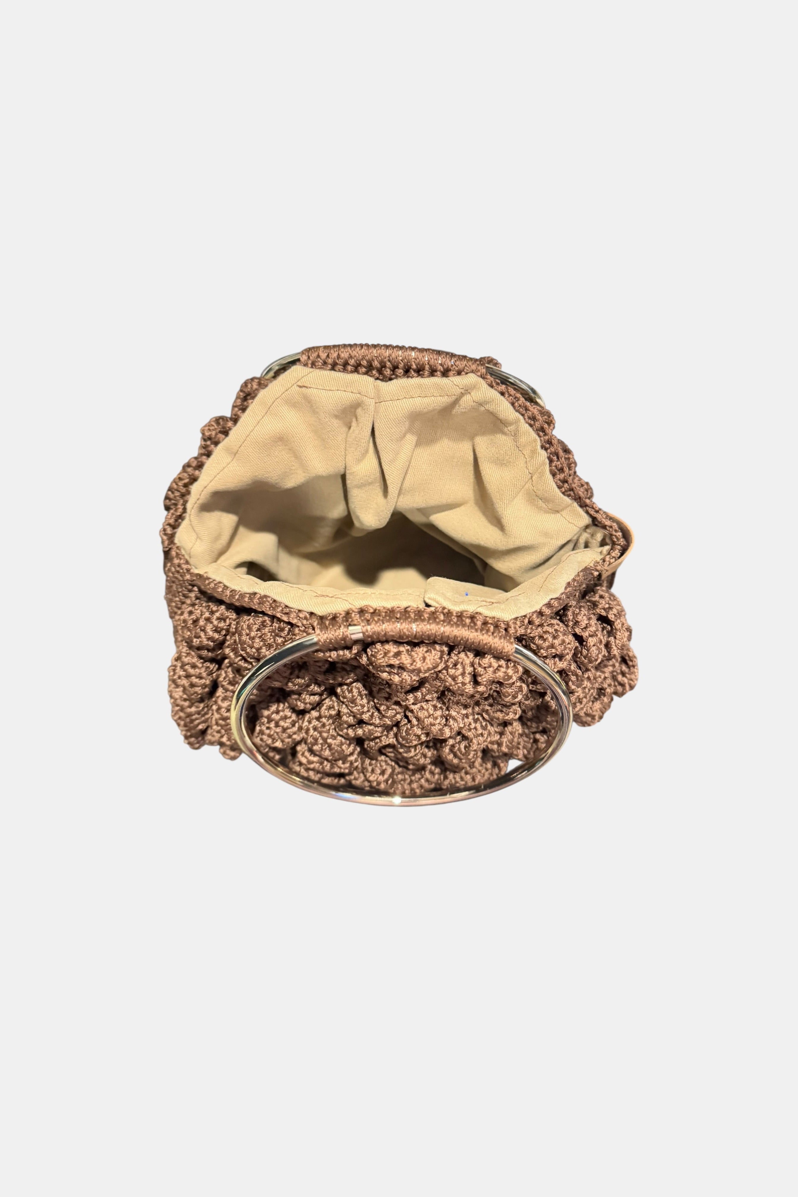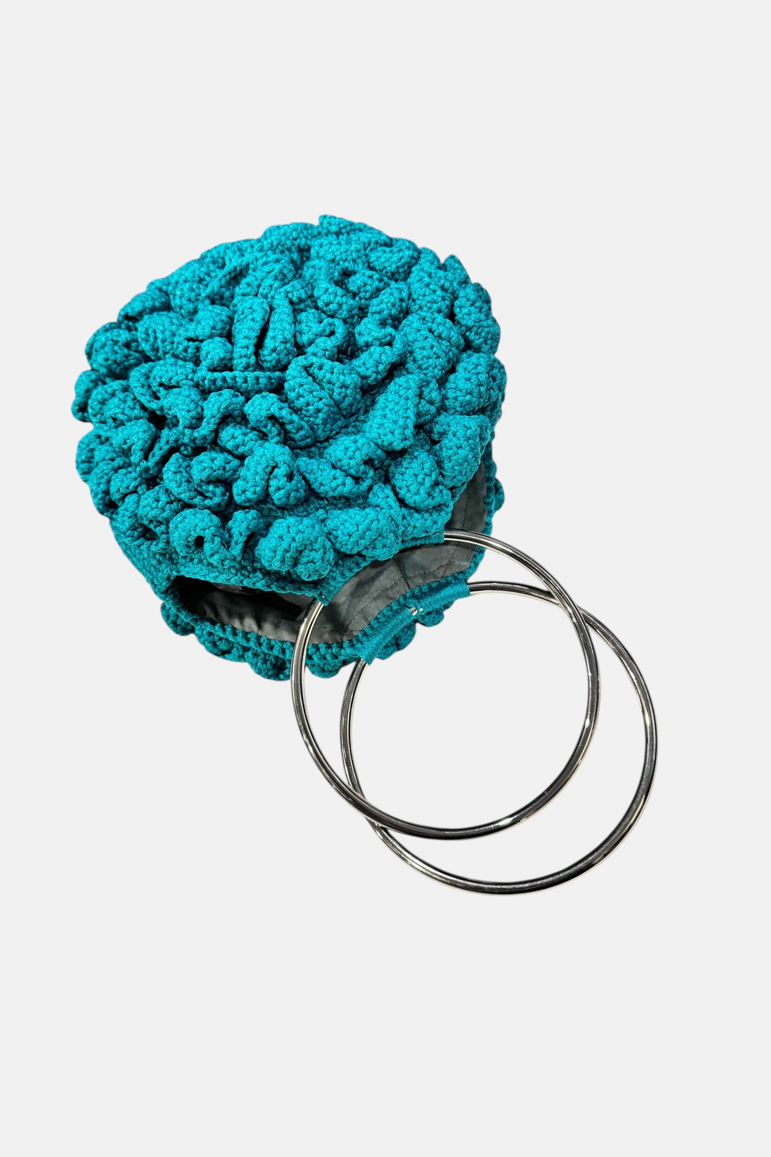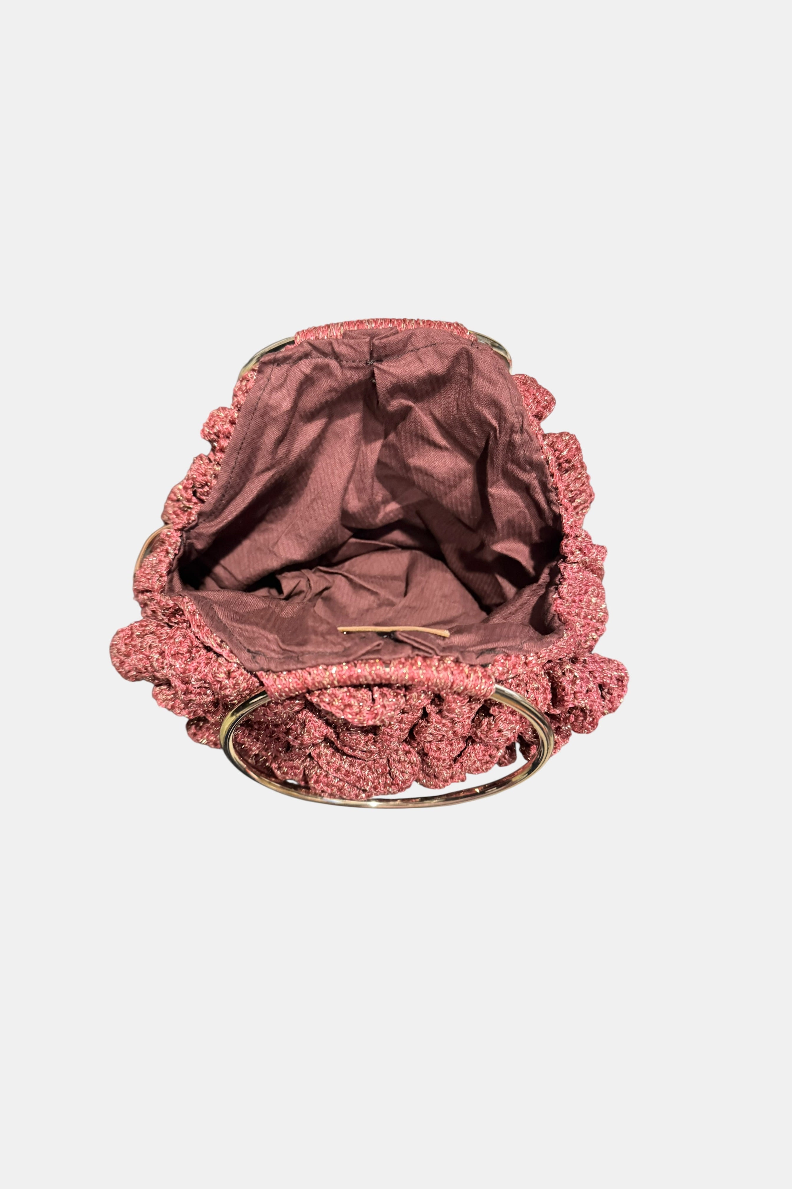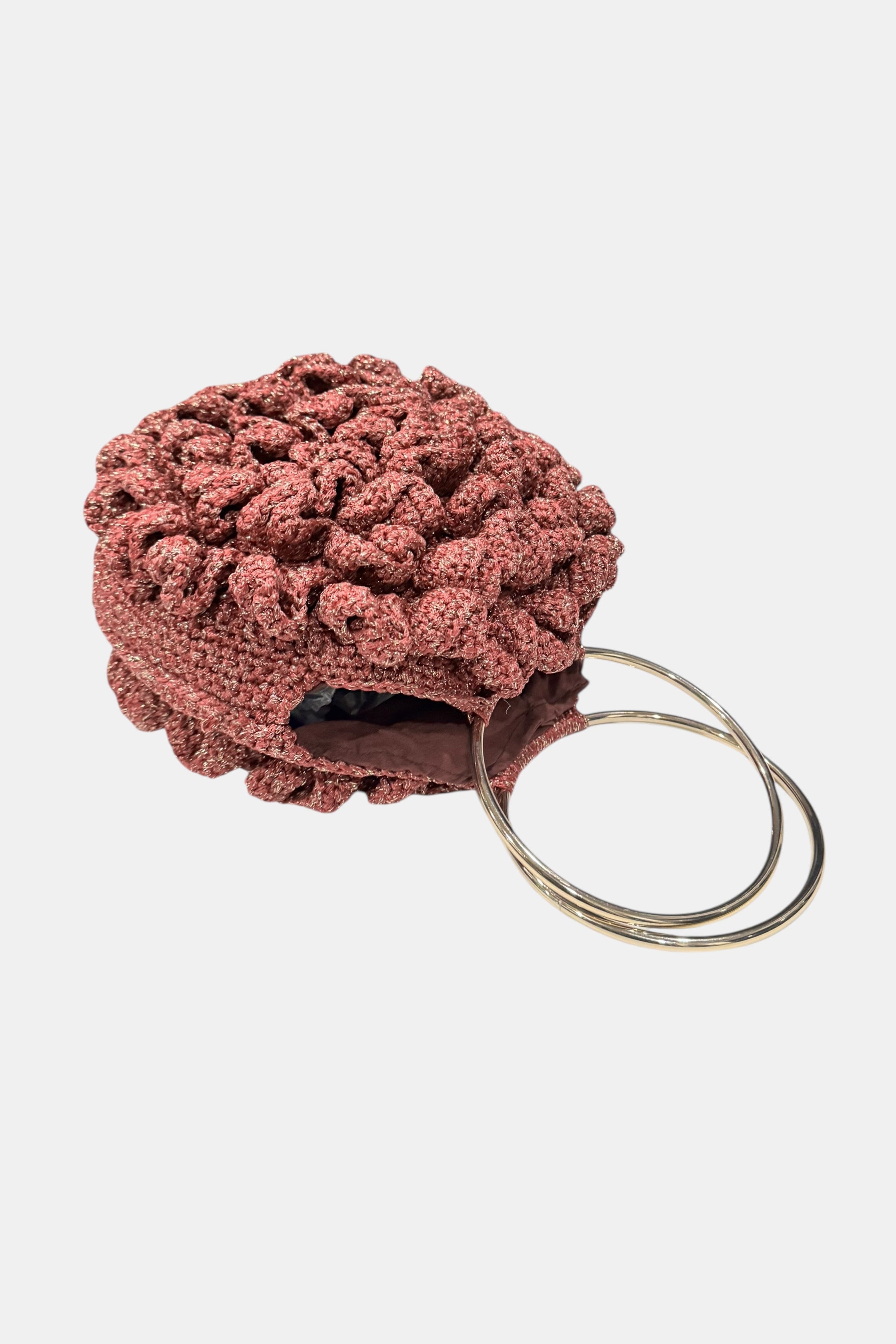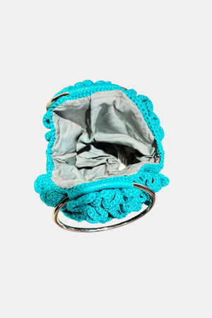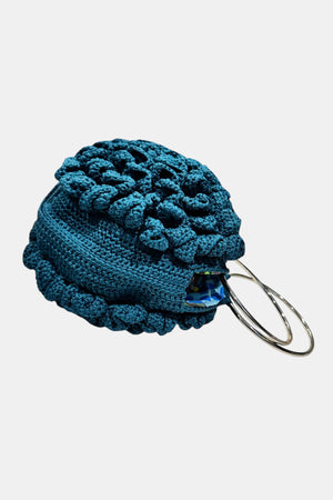 Hand- Knitted Halo Embossed Rose Bag w/ Steel Handles