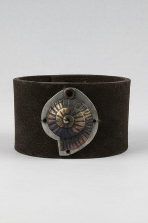 Handmade Metal Sea Shell Fossil Leather Bracelet