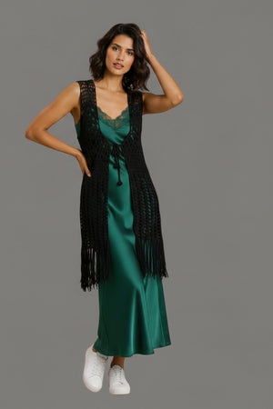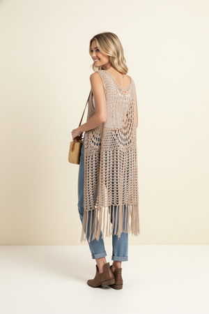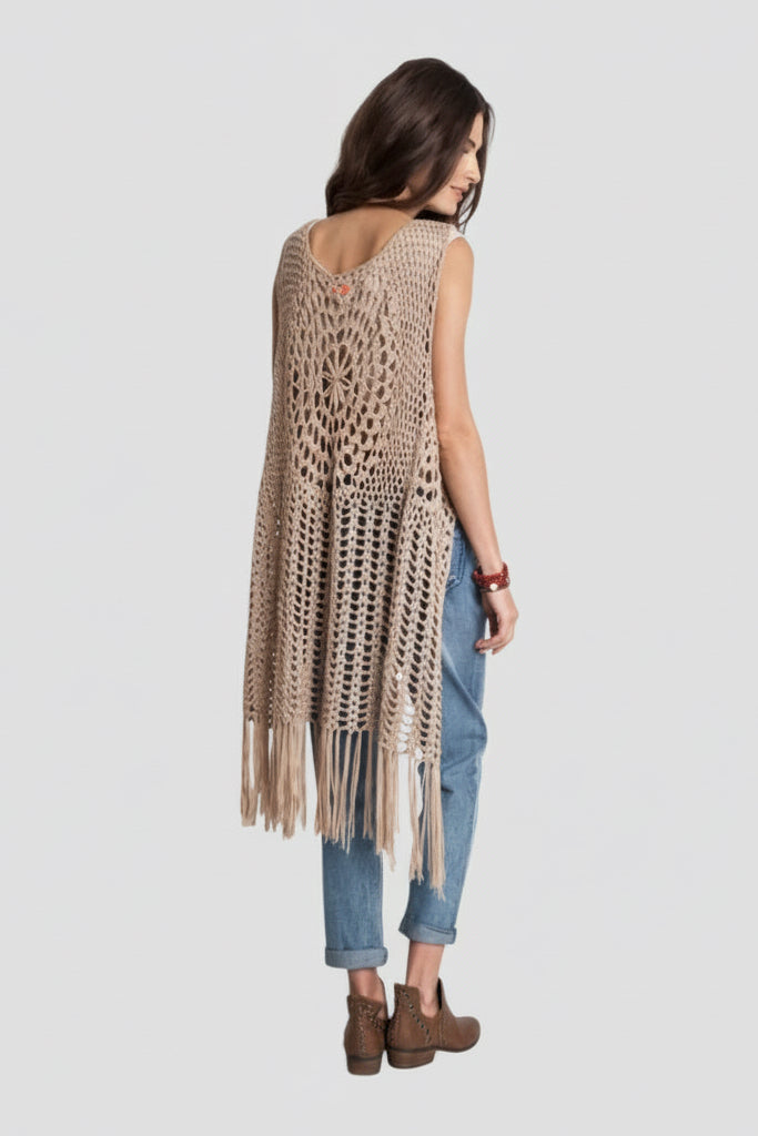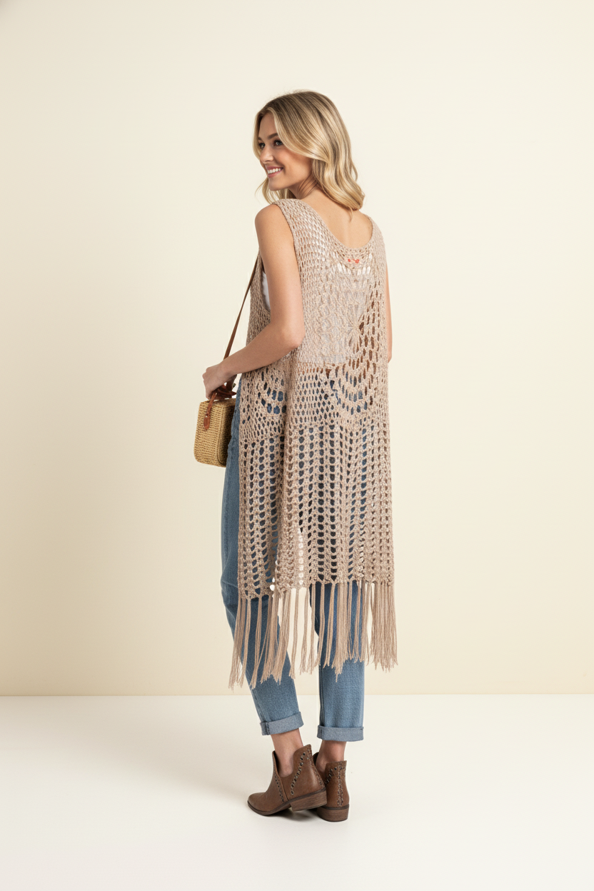 Add a splash of free-spirited charm to your wardrobe with this Mandala Design Crochet Fringe Hem Boho Vest. Featuring intricate crochet patterns and playful fringe details, it’s perfect for layering over your favorite tops to create a relaxed, boho vibe. Lightweight and breezy, this vest brings a touch of artistic flair to any outfit, making it your go-to piece for festivals, beach days, or casual hangouts. Embrace your inner wanderer and let your style flow!