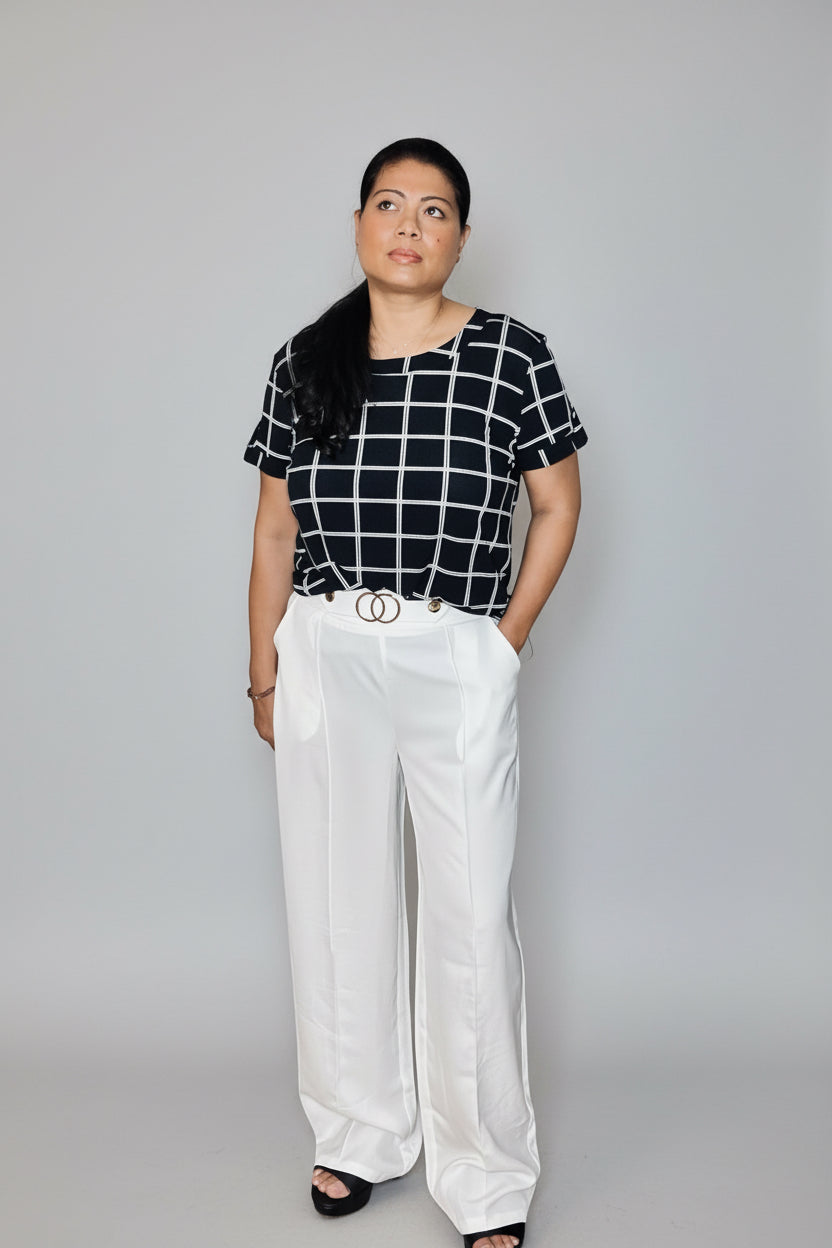 Elevate your wardrobe with our High Waist Wide Leg Pants from Mandalay And Company. Designed for the modern fashionista, these chic pants offer a flattering, sophisticated silhouette. Made from premium materials, their high waist and wide leg ensure a timeless and elegant look for any occasion. Pair them with your favorite blouse or crop top for effortless style and comfort.