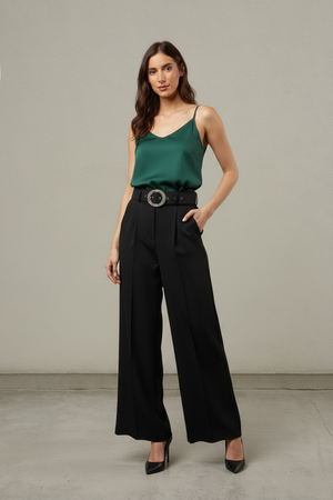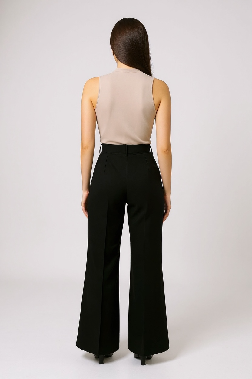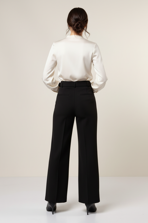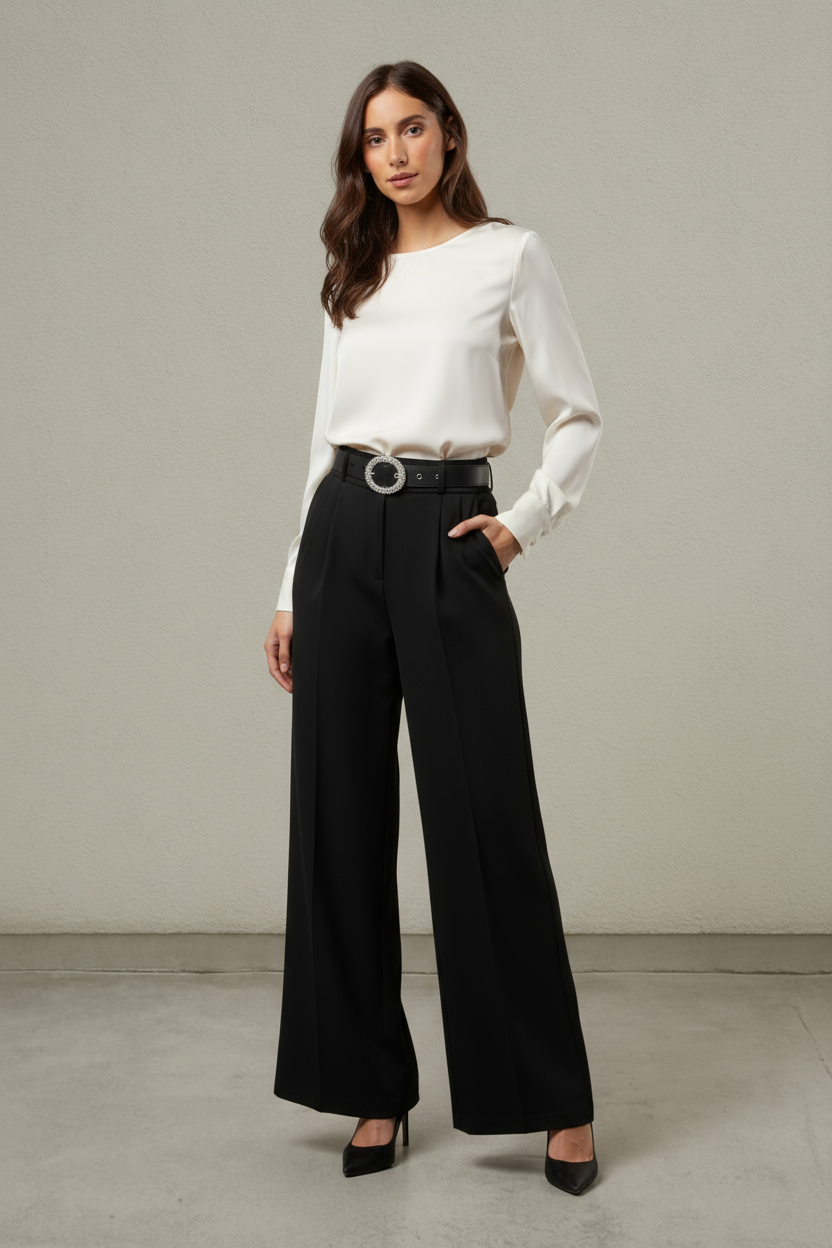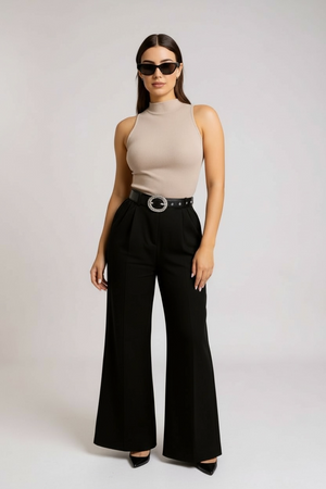 These Belted Luxe Flare High Waisted Pants offer a refined silhouette with a tailored high waist and an elegant flare. The statement cinch belt subtly defines the waist, while the graceful sway of the fabric adds a touch of effortless sophistication to your ensemble. Ideal for elevating both professional and evening looks.