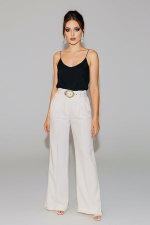 BELTED LUXE FLARE HIGH WAISTED PANTS