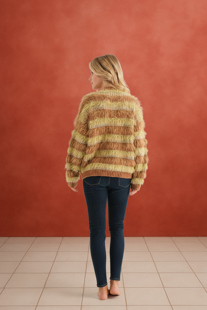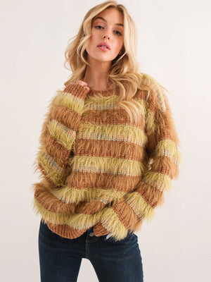 Honey Haze Fuzzy Stripe FUPullover Sweater
