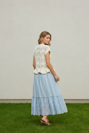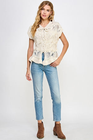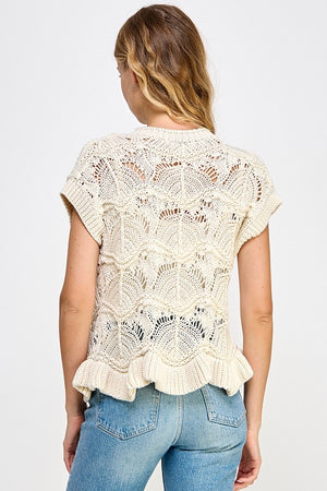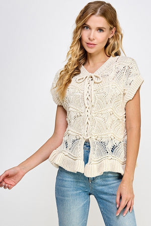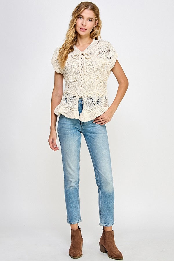 Isla Ruffle Crochet Lace -Up Chunky Knit Sweater Vest Top