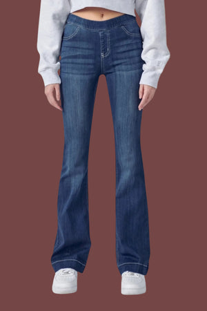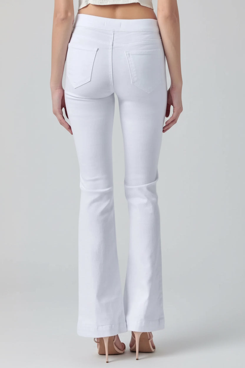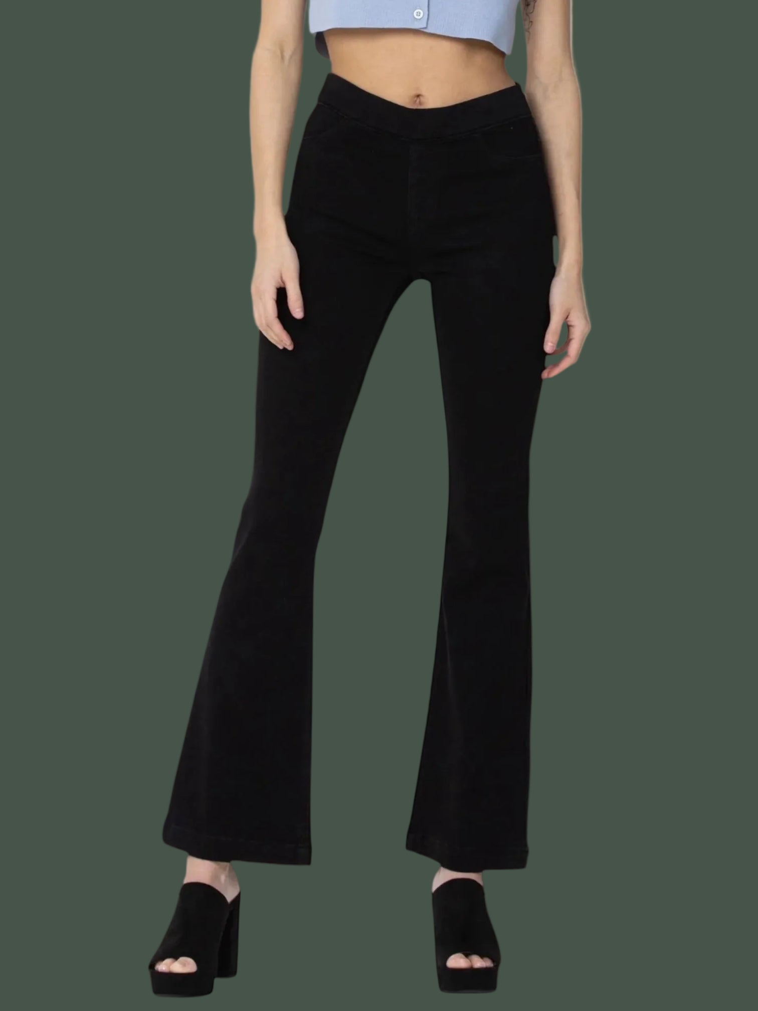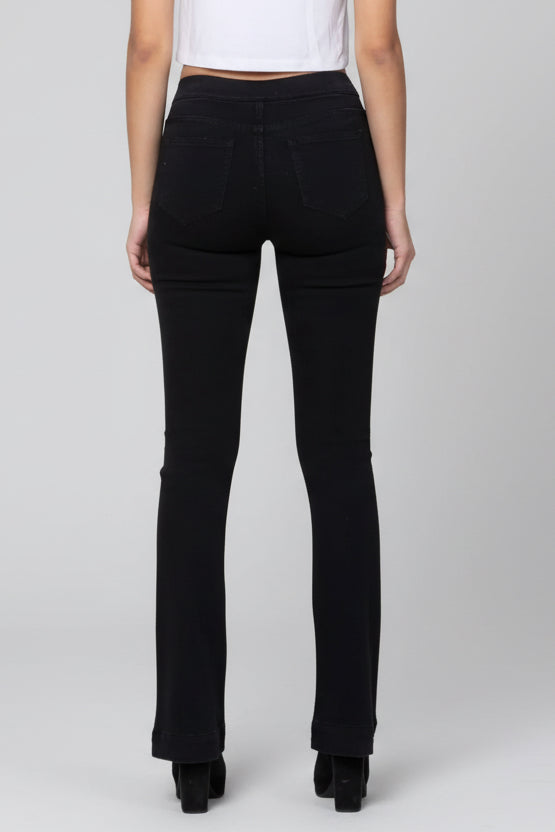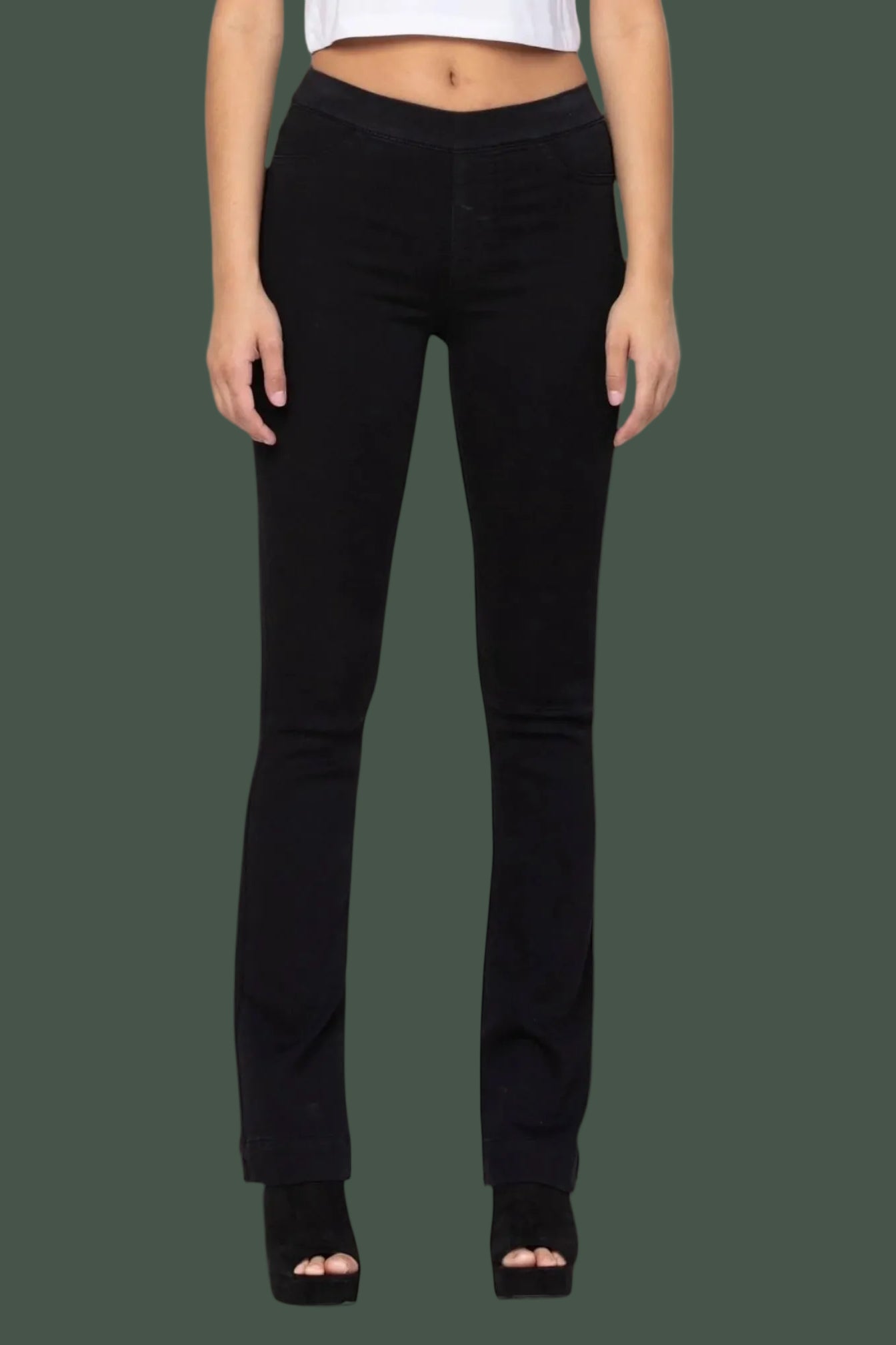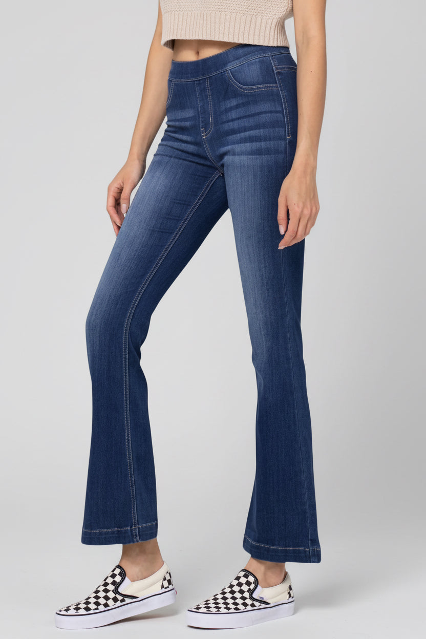 MID RISE PULL ON FLARE ULTRA STRETCHY DENIM JEGGING JEANS