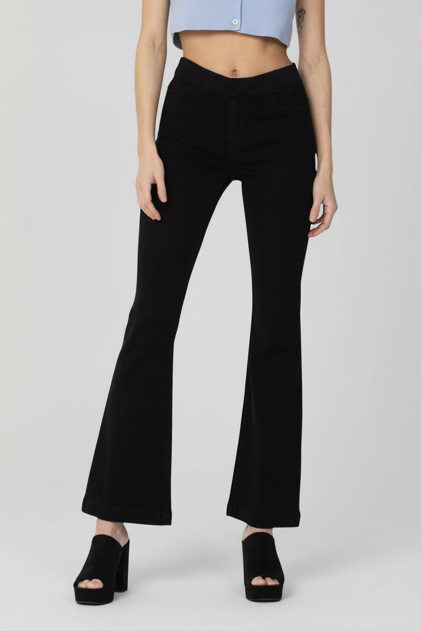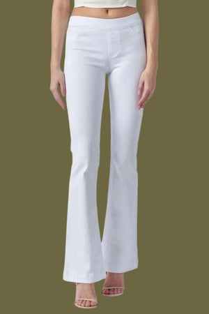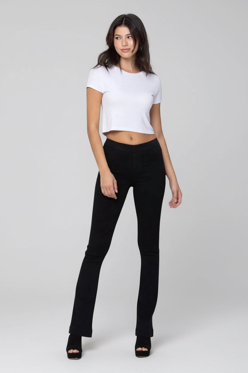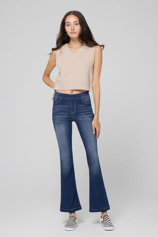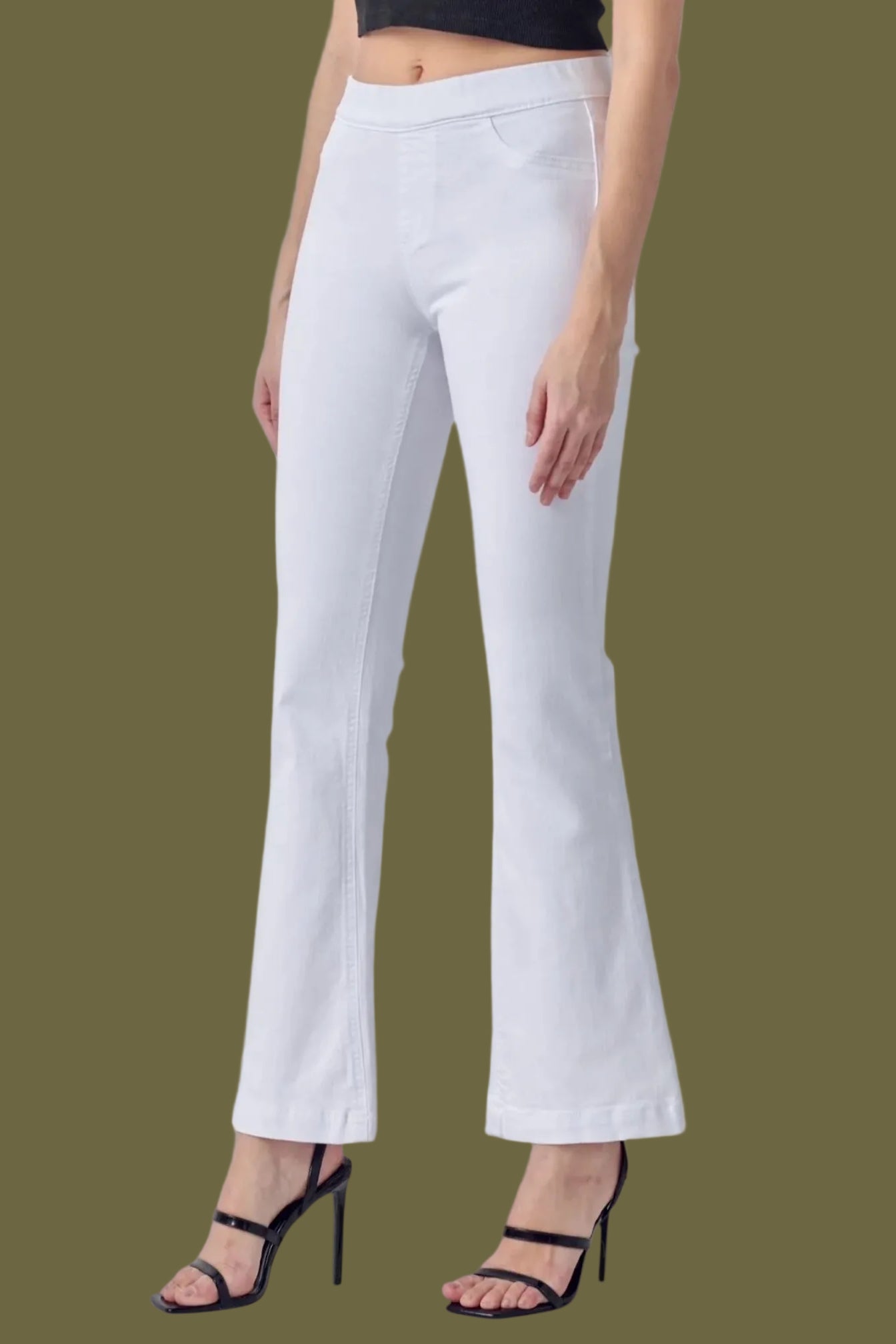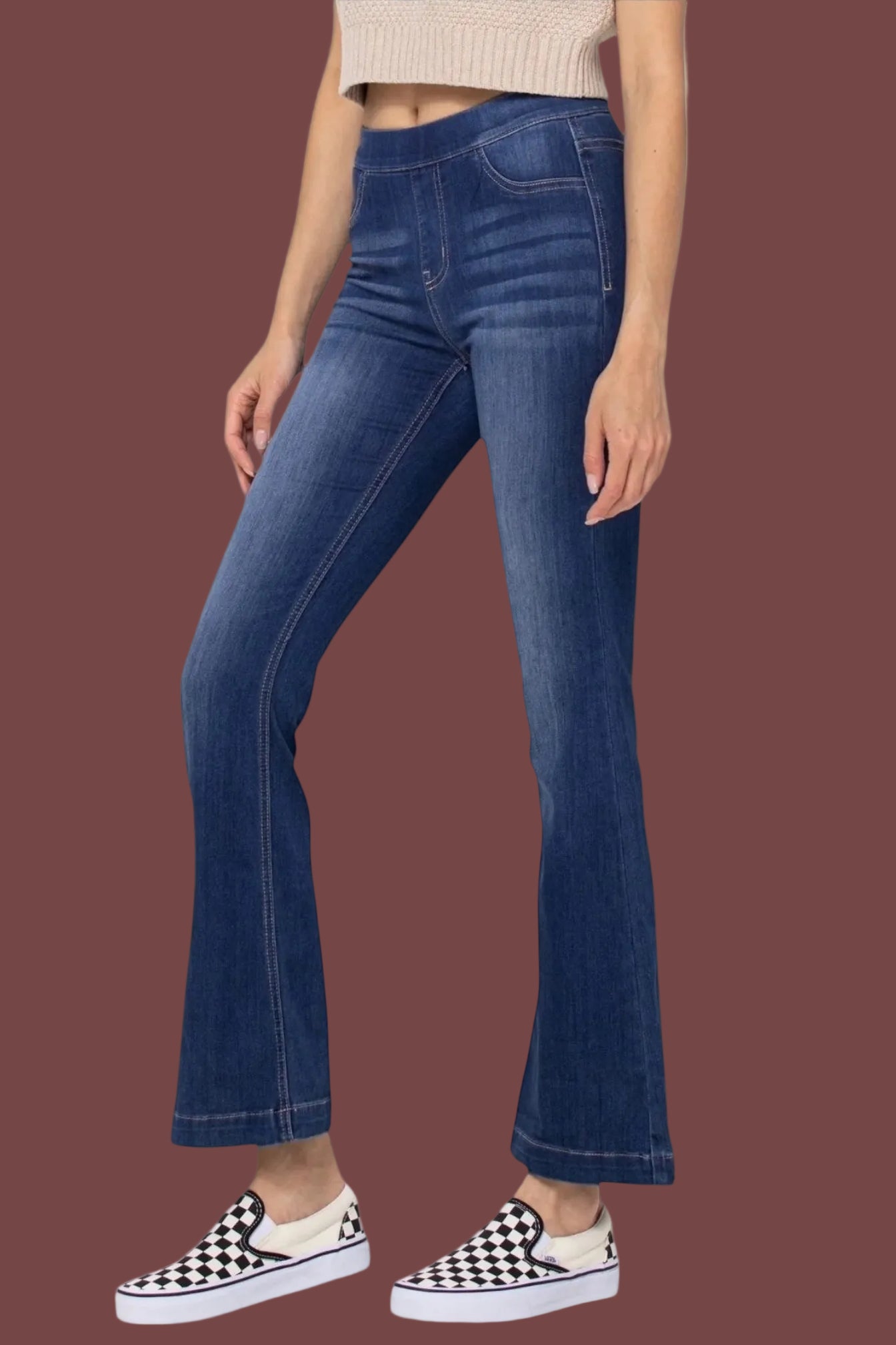 MID RISE PULL ON FLARE ULTRA STRETCHY DENIM JEGGING JEANS