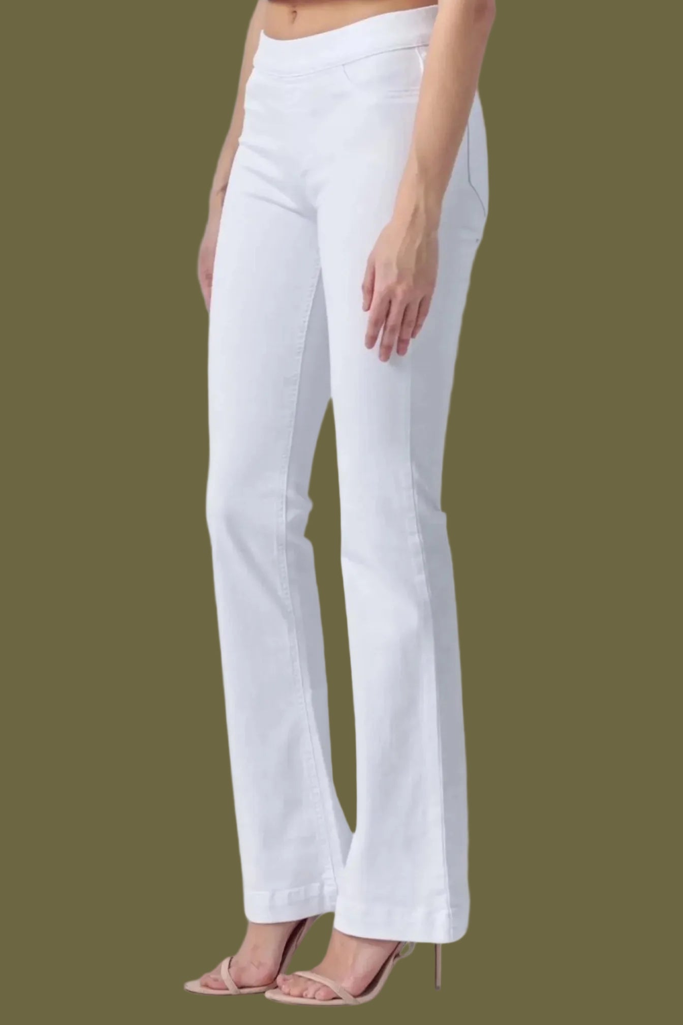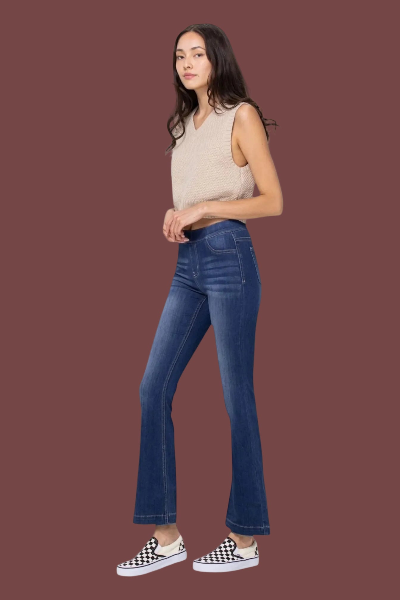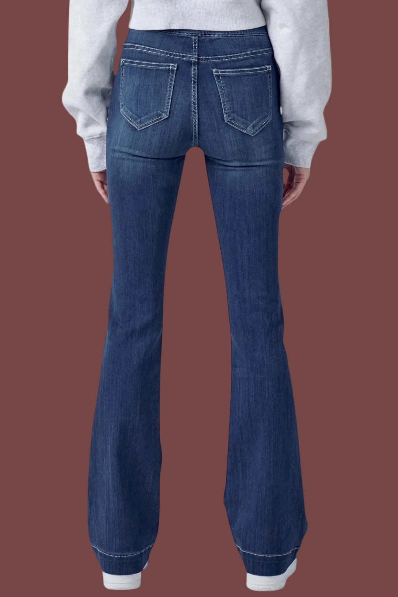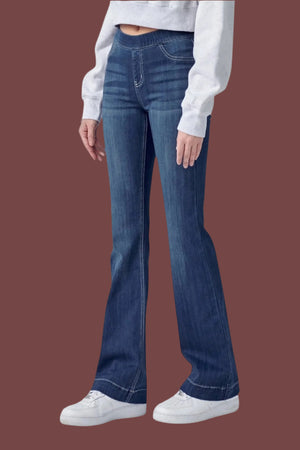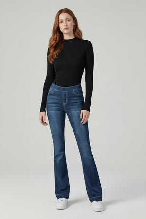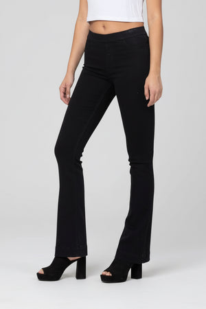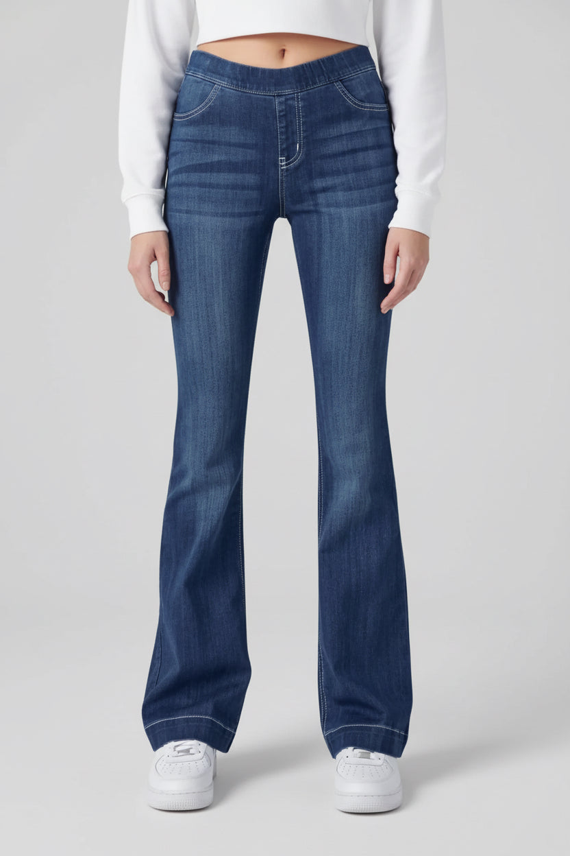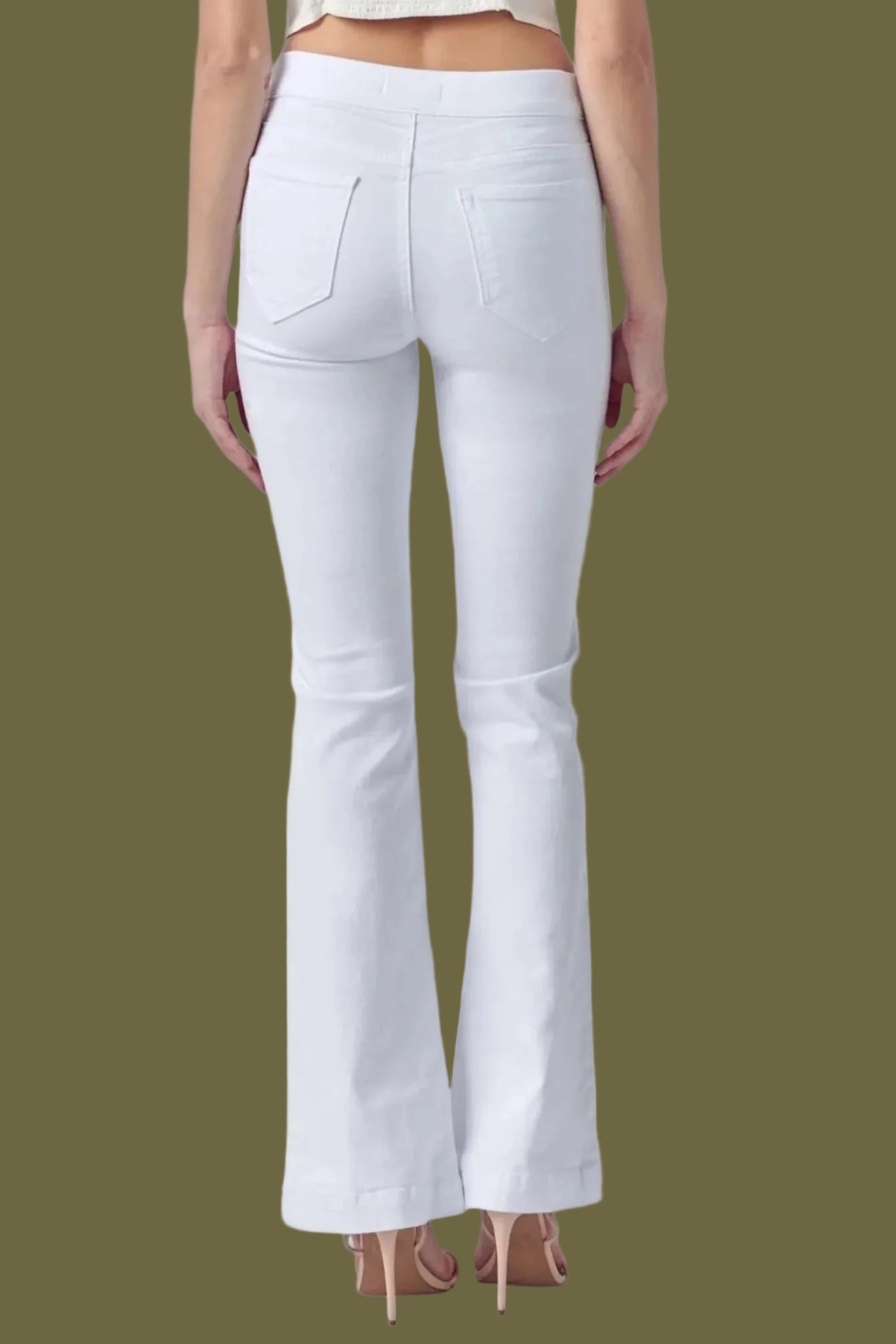 MID RISE PULL ON FLARE ULTRA STRETCHY DENIM JEGGING JEANS