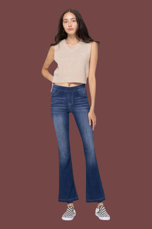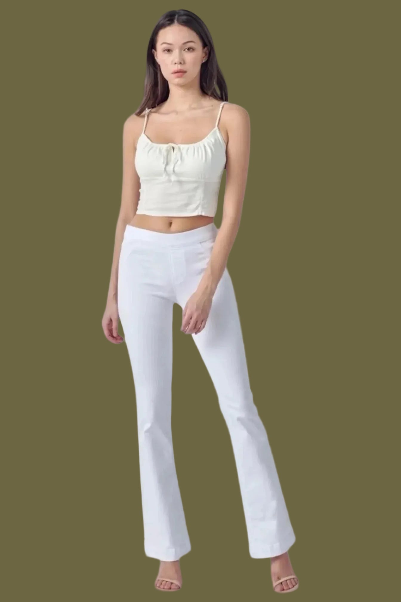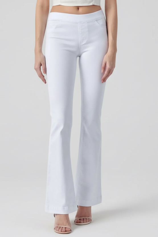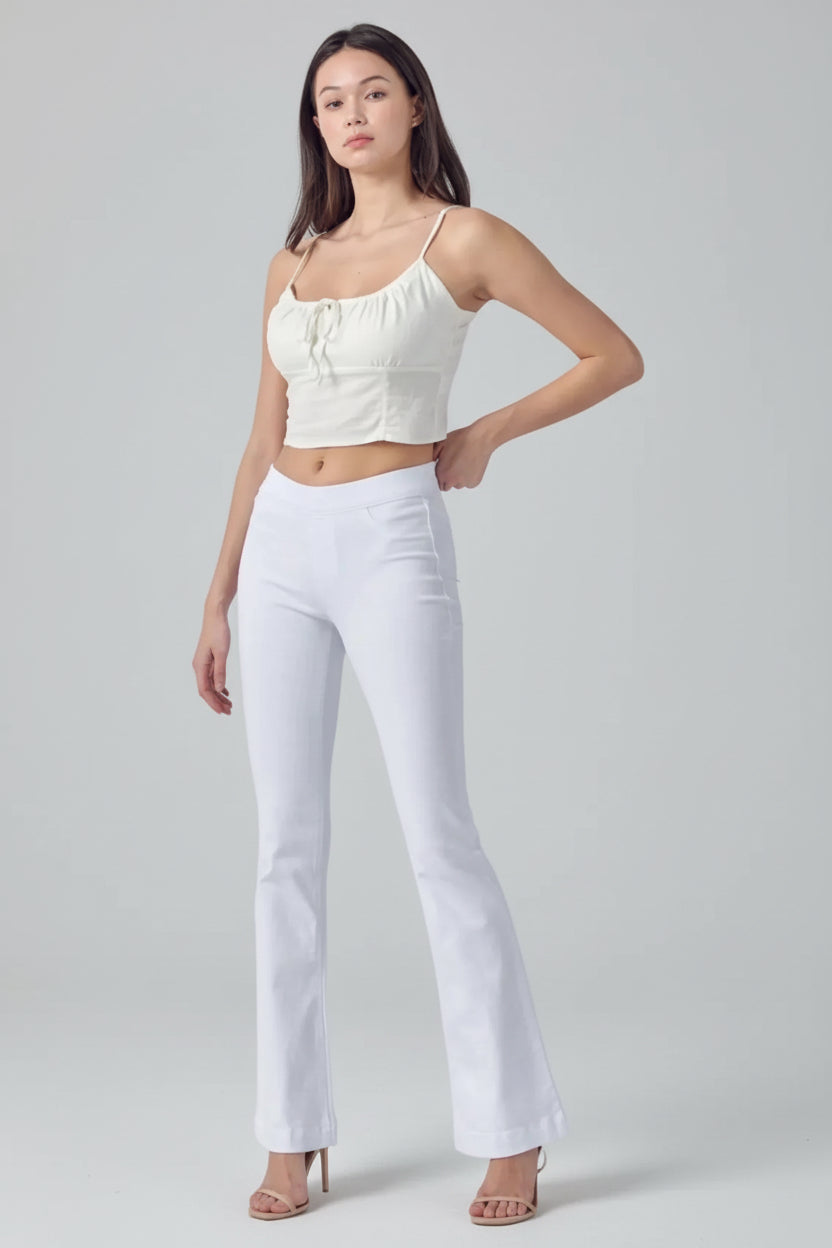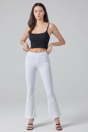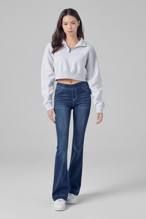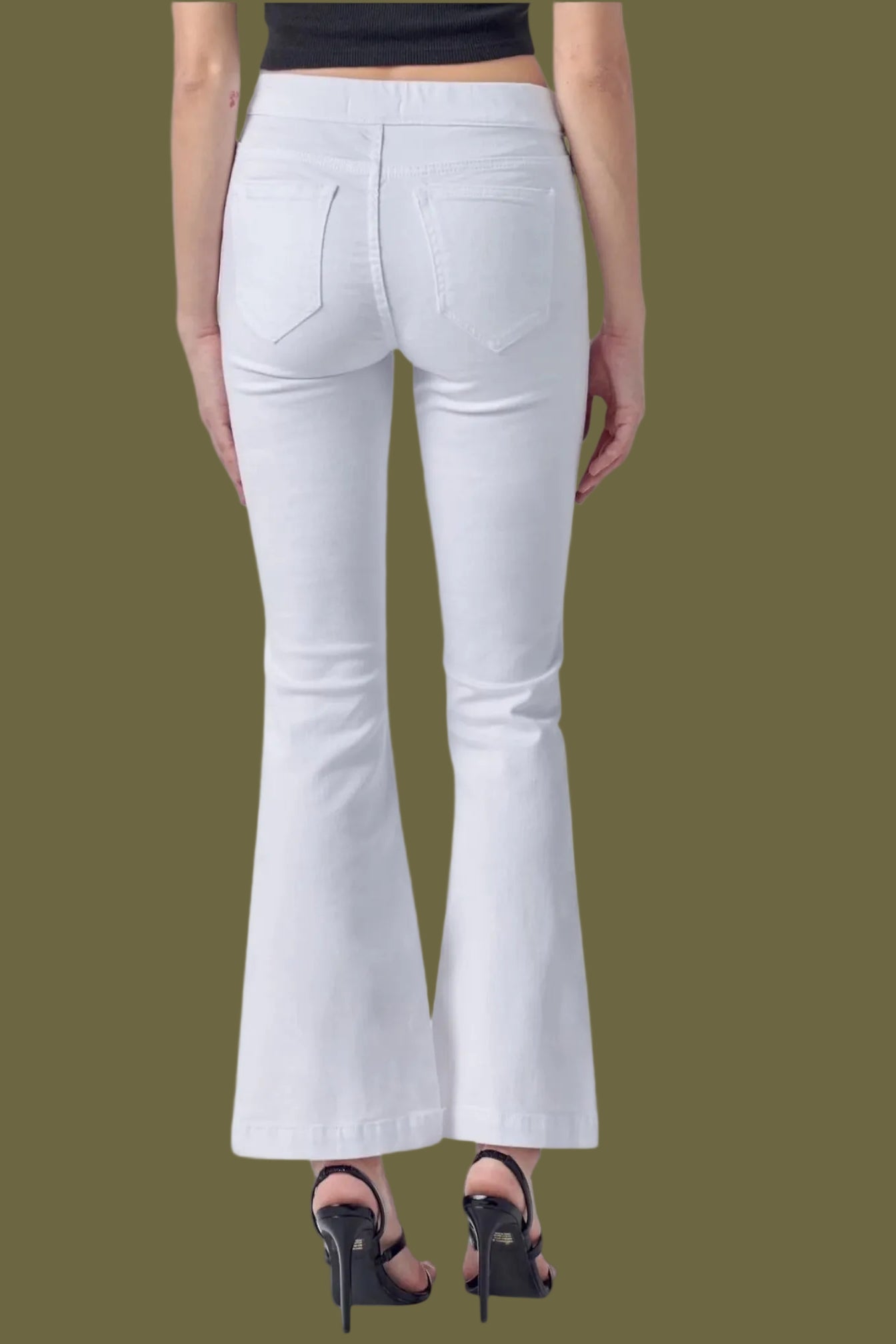 MID RISE PULL ON FLARE ULTRA STRETCHY DENIM JEGGING JEANS