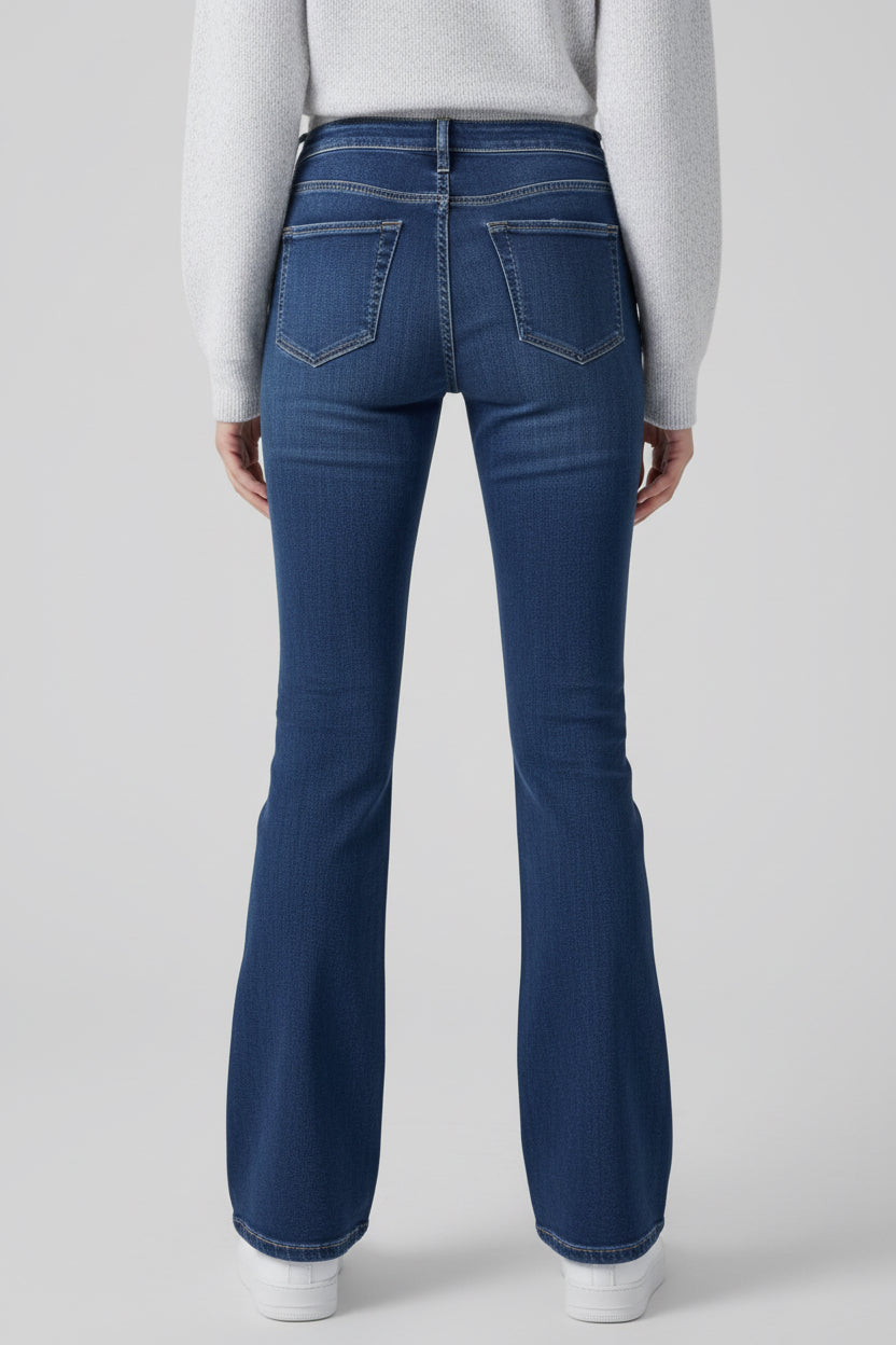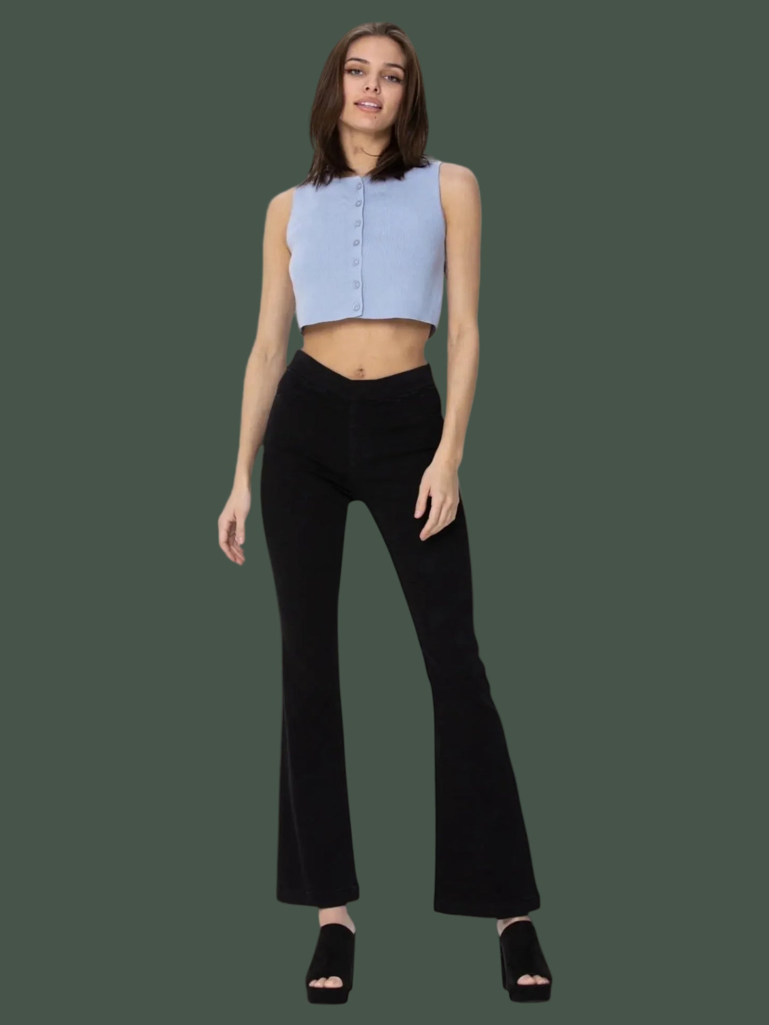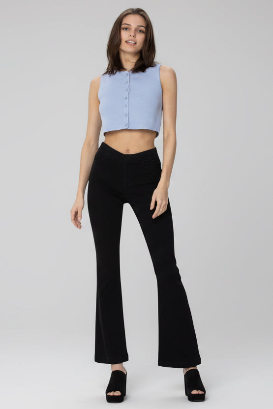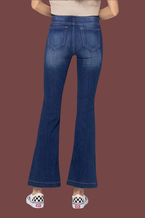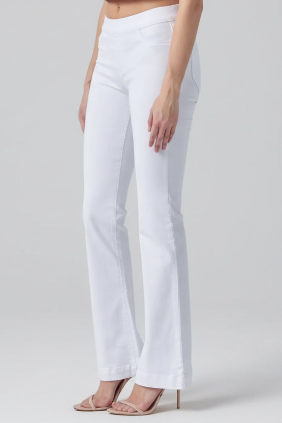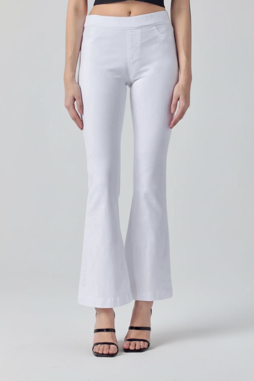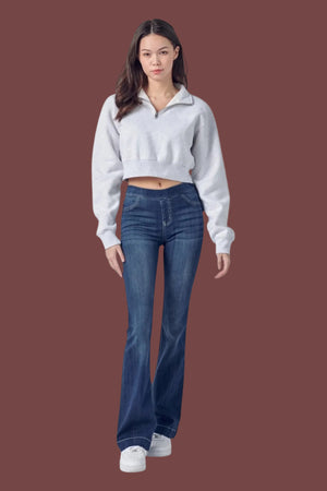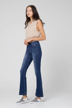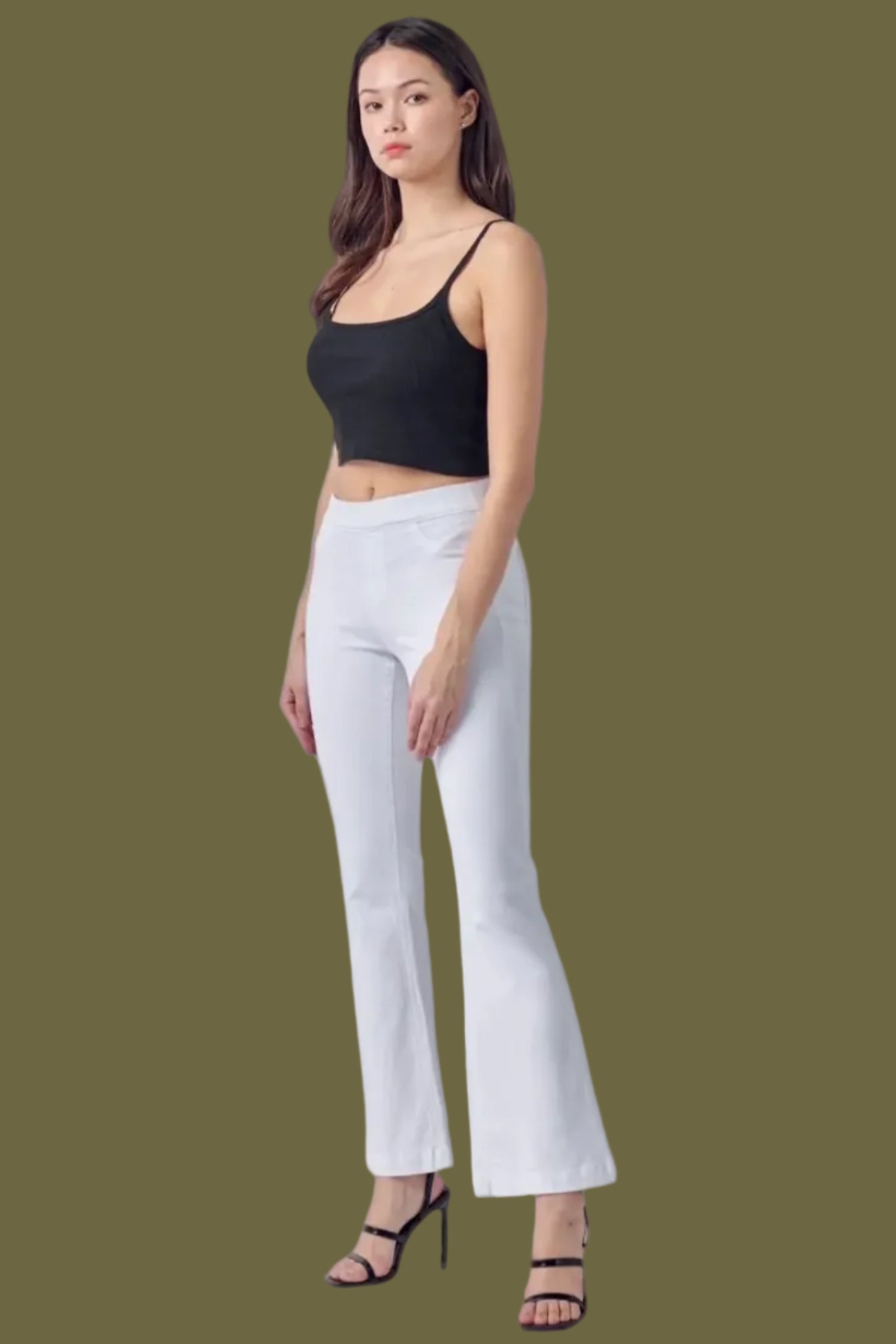 MID RISE PULL ON FLARE ULTRA STRETCHY DENIM JEGGING JEANS