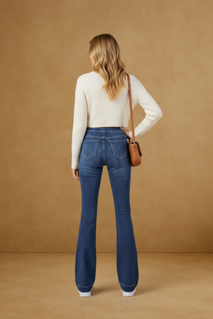 Experience the perfect blend of comfort and style with our Mid Rise Flare Highly stretchable legging Jeans. It's designed to give you a flattering fit and a fashionable flare. It is equipped with two faux front pockets and two authentic back pockets, adding both style and functionality. Say goodbye to sacrificing comfort for style and hello to the best of both worlds. Elevate your wardrobe with our must-have Jeggings today!