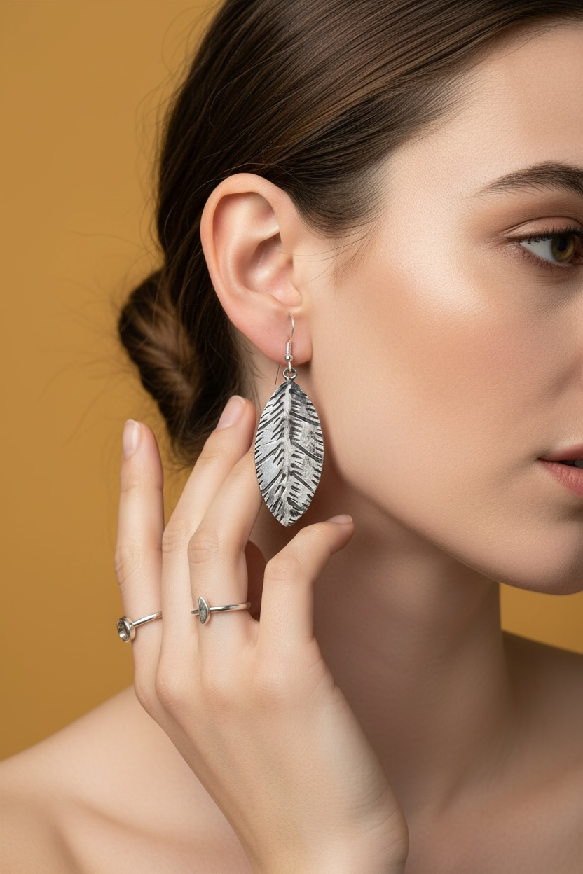 Elevate your style with Kashi -Antique Silver Feather earrings at Mandalay And Company. These nature-inspired, elegant earrings enhance any outfit. Perfect for those who value unique, high-quality accessories, they reflect Mandalay And Company's craftsmanship. Embrace sophistication and make a lasting impression with these stunning feather earrings. Made in India