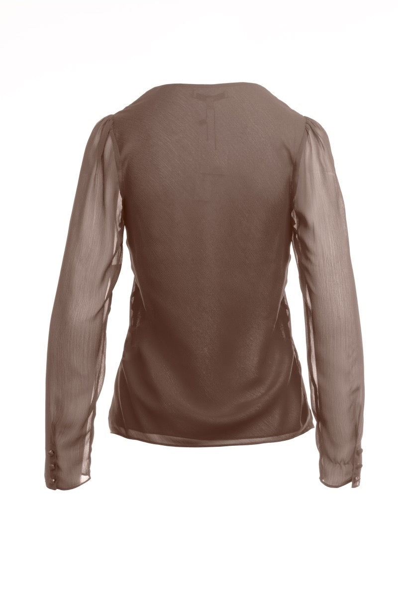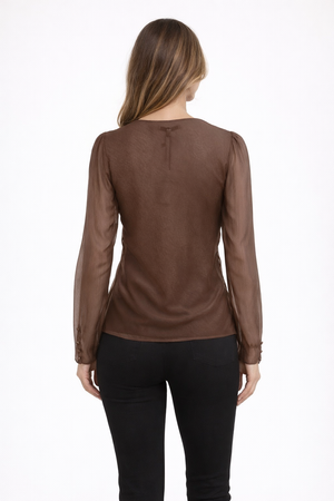 Long Sleeve Regular Neck Bias Blouse With Puff Sleeve
