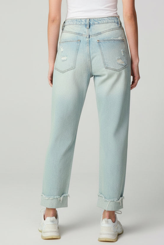 LT. BLUE DESTROYED 90'S CUFFED STRAIGHT LEG DENIM JEANS