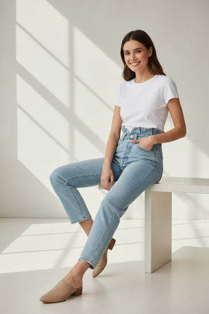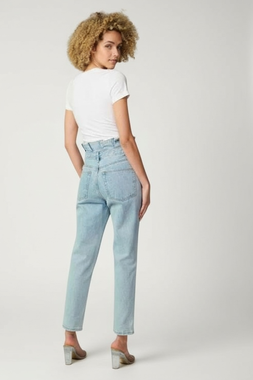 Discover the perfect blend of style and comfort with these light blue denim crop jeans. Featuring a high waist and a fashionable paper bag silhouette enhanced by delicate ruffles, they effortlessly accentuate your figure while adding a playful touch. Ideal for any occasion, these jeans will elevate your wardrobe and keep you looking effortlessly chic. Don’t miss out on this must-have piece that combines trend and versatility.