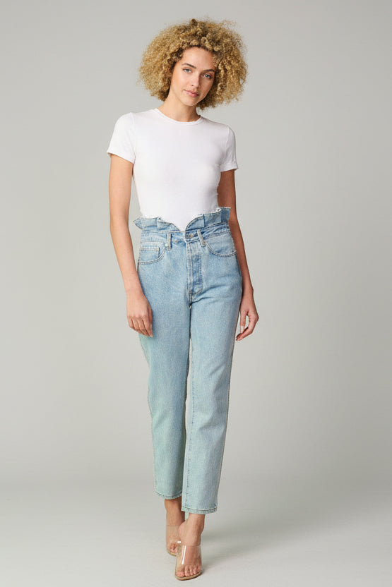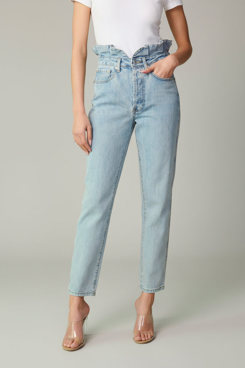 LT. BLUE RUFFLE PAPER BAG HIGH WAIST DENIM CROP JEANS