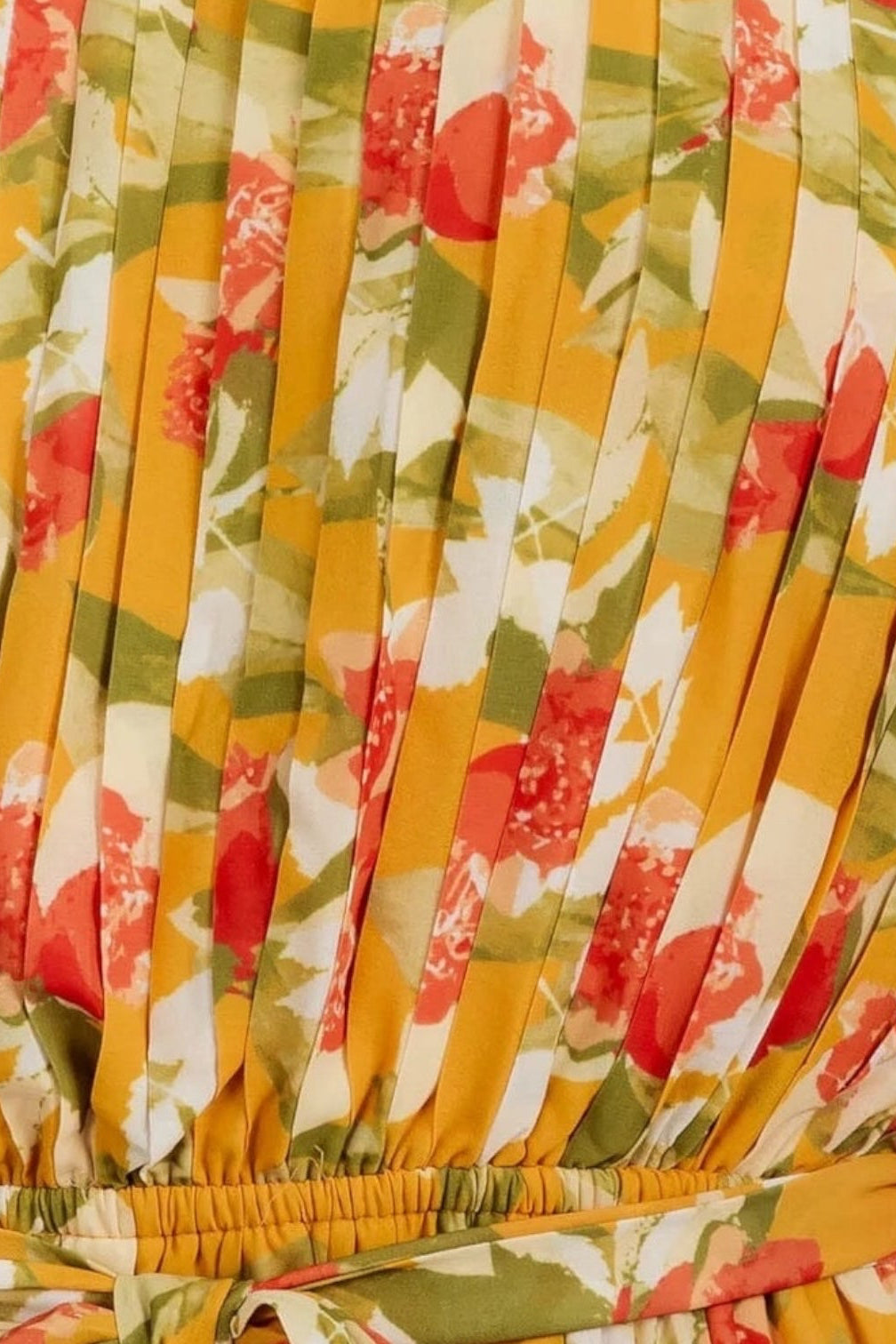Step into effortless elegance with this pleated woven maxi dress in a striking mustard floral print. The one-shoulder silhouette adds a modern, chic touch, while the tie waist ensures a customized, flattering fit. Crafted with intricate angel sleeves, elasticized waist and self tie, this full pleated dress completes your look giving you a flattering Silhouette. Ideal for making a memorable impression at any occasion, this dress blends comfort and style seamlessly. Elevate your wardrobe today with a piece designed to turn heads and boost your confidence.