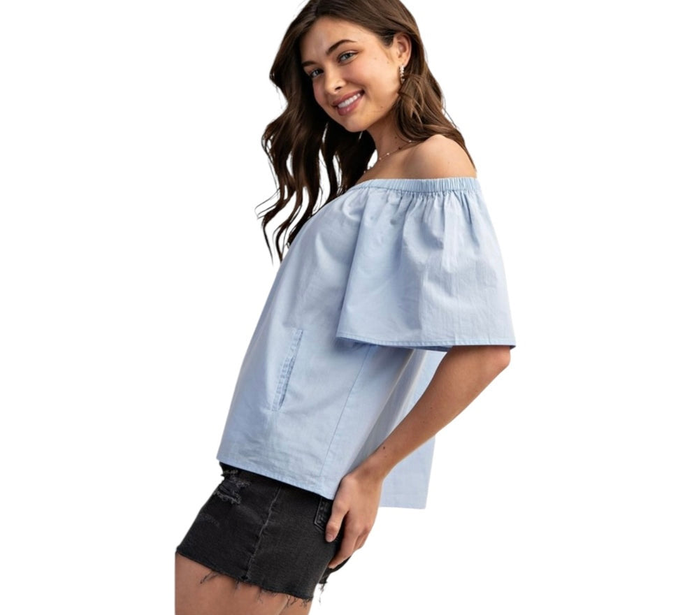 Step into your power with the Everyday Goddess Off Shoulder Front Pocket Top! This playful piece shows off your shoulders while keeping it fun and flirty with a handy front pocket. Perfect for those days when you want to feel effortlessly cool and totally confident. Get ready to turn heads and own your vibe!