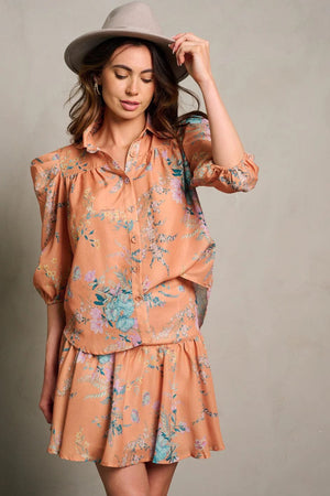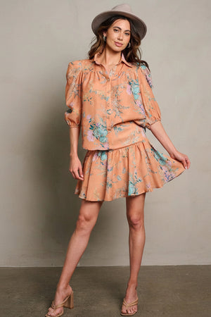 PEACH FLORAL MINI SKIRT SET